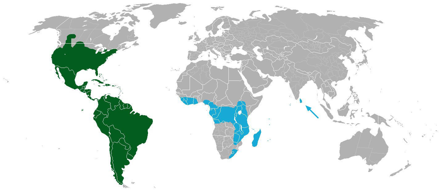 다른 많은 종들이 사람들에 의해 도입된 후, 특히 오스트레일리아, 하와이, 지중해 지역에서 아메리카 대륙 외부에서 귀화되었다.