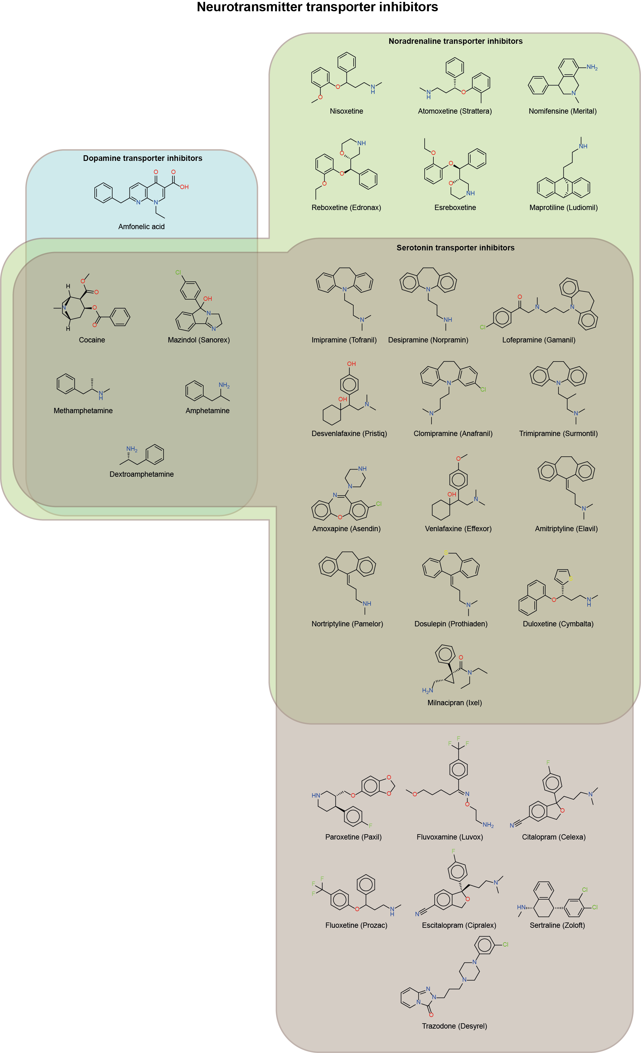 뇌에서 정보는 신경 세포 사이의 작은 간극인 화학적 시냅스를 통해 다른 세포로 전달된다. 정보를 보내는 전 시냅스 세포는 세로토닌을 포함한 신경 전달 물질을 그 간극으로 방출한다. 신경 전달 물질은 수신 후 시냅스 세포 표면의 수용체에 의해 인식되며, 이러한 자극에 따라 신호를 중계한다. 이 과정에서 신경 전달 물질의 약 10%가 손실되고, 나머지 90%는 수용체에서 방출되어 모노아민 수송체에 의해 전 시냅스 세포로 다시 흡수되는데, 이를 ''재흡수''라고 한다.