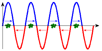 교대로 원통형 전극에 적용되는 진동 전압은 반대 극성(180° 위상차)을 가지므로, 인접한 전극은 반대 전압을 갖는다. 이는 각 전극 쌍 사이의 간극에 진동하는 전기장(E)을 생성하여 입자가 통과할 때 힘을 가해 에너지를 전달, 가속시킨다. 입자원에서 전압의 각 주기마다 한 번씩 첫 번째 전극에 입자 그룹을 주입하며, 이때 전극의 전하는 입자의 전하와 반대이다. 입자 묶음이 전극을 통과할 때마다 진동 전압이 극성을 변경하므로, 입자가 전극 사이의 간극에 도달하면 전기장이 입자를 가속하는 올바른 방향으로 향한다. 따라서 입자는 전극 사이를 통과할 때마다 더 빠른 속도로 가속된다. 전극 내에는 전기장이 거의 없으므로 입자는 각 전극 내에서 일정한 속도로 이동한다.