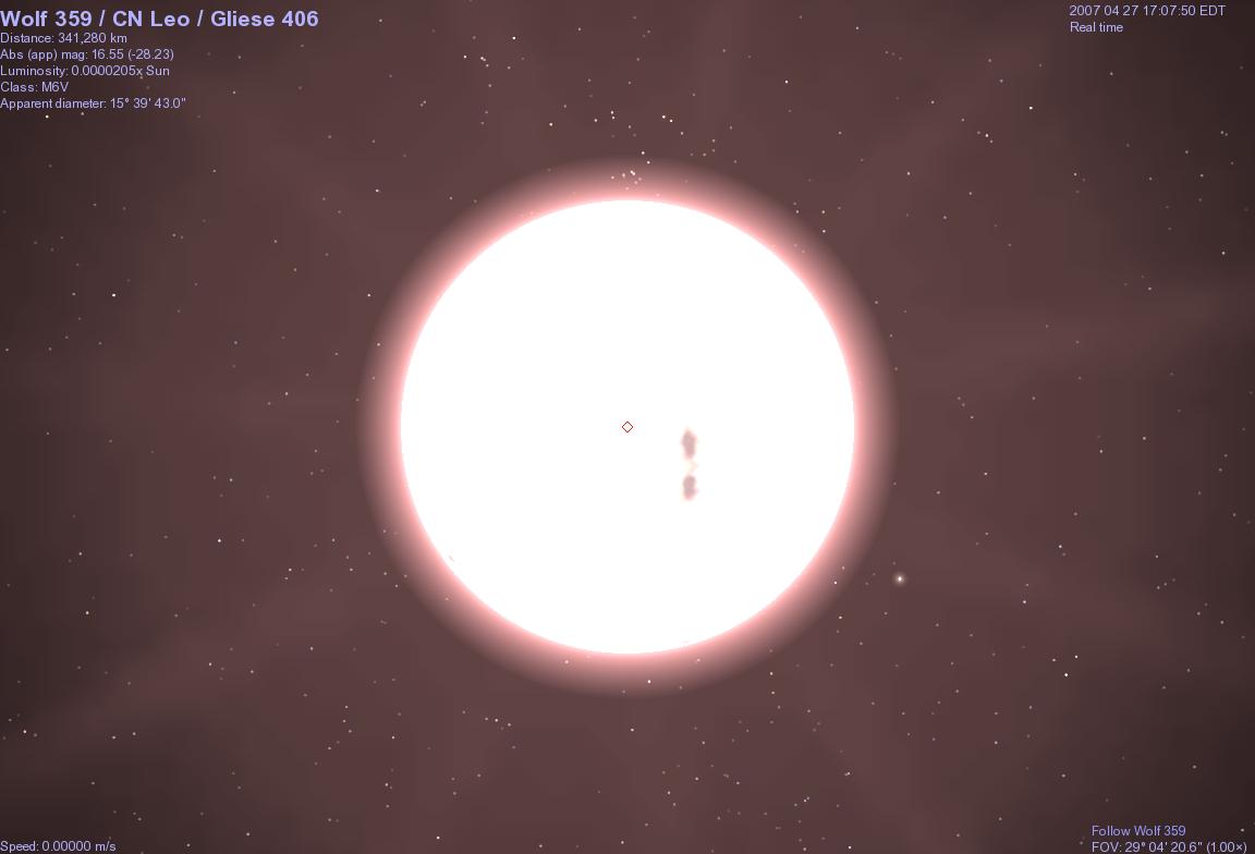 울프 359는 지구에서 가까운 적색 왜성이자 UV Cet형 섬광성으로, 비교적 높은 플레어 발생률을 보인다. 글리제 406 또는 CN 레오로도 알려져 있으며, 분광형은 M6.5이고 X선을 방출한다.[12][13]