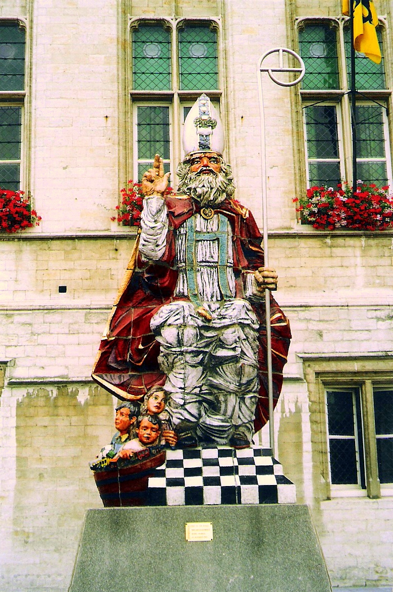벨기에에서는 12월 6일 아침에 ''신터클라스페스트''(Sinterklaasfeest, 네덜란드어) 또는 ''라 생 니콜라''(la Saint-Nicolas, 프랑스어)를 기념한다. 그는 매년 11월 중순경에 증기선을 타고 도착하며, 앤트워프에 연례적으로 나타나는데, 이 행사에는 보통 수백 명의 아이들이 참석한다. ''신터클라스''는 빨간 망토와 주교관을 포함한 주교의 의복을 입고, 네덜란드에서는 ''쉬멜'' 또는 ''아메리고'', 플란데런에서는 ''슬레흐트 베르 바안다흐''(Slecht Weer Vandaag, 오늘 날씨가 좋지 않음)라는 흰 말을 탄다.[22] 동플란데르의 신트니클라스 마을에는 시청 앞에 신터클라스 동상이 있다.