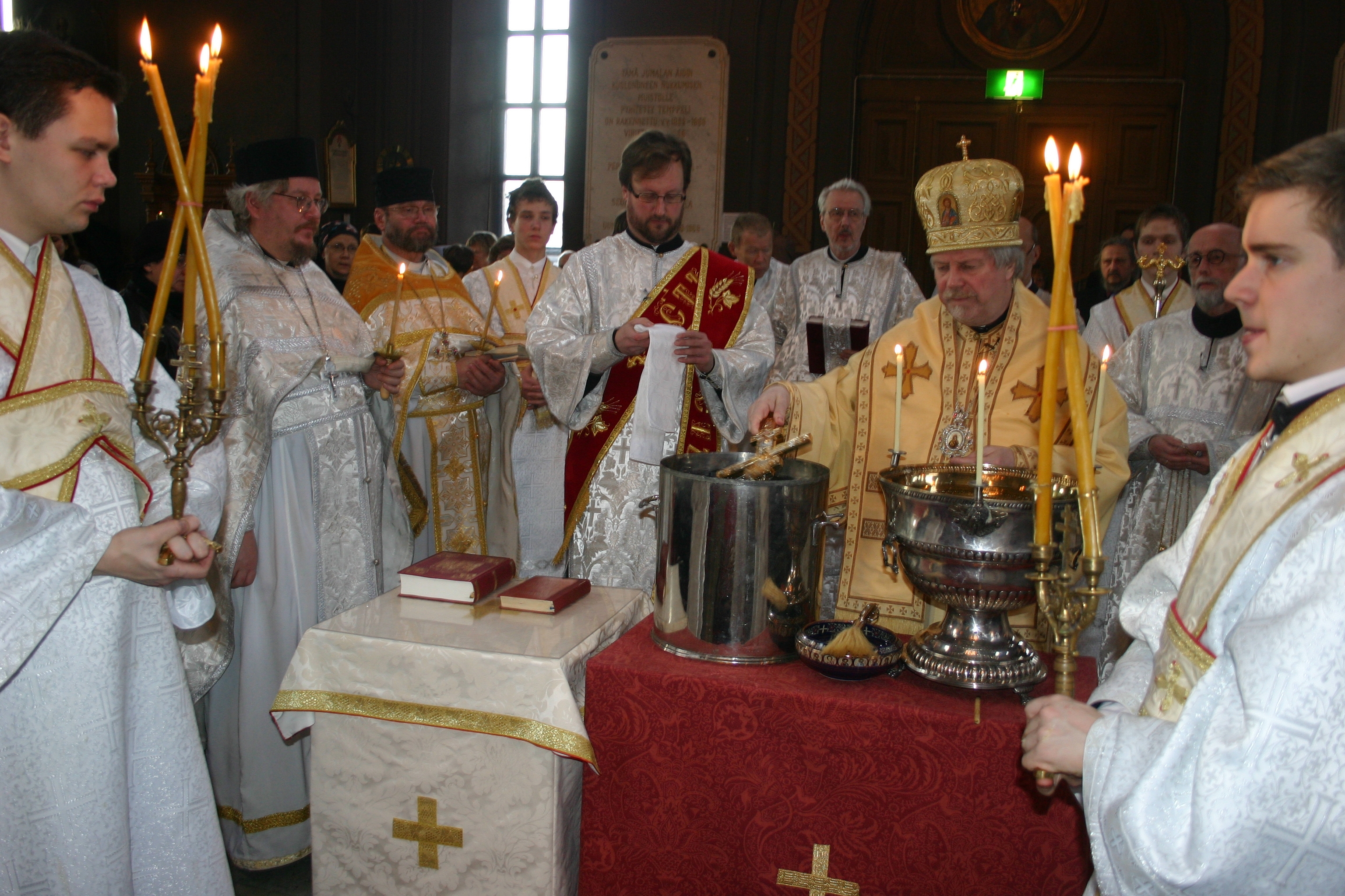 세례식 때는 성직자가 성수를 축복하며 기도한다.[68]'''세례수 축복'''