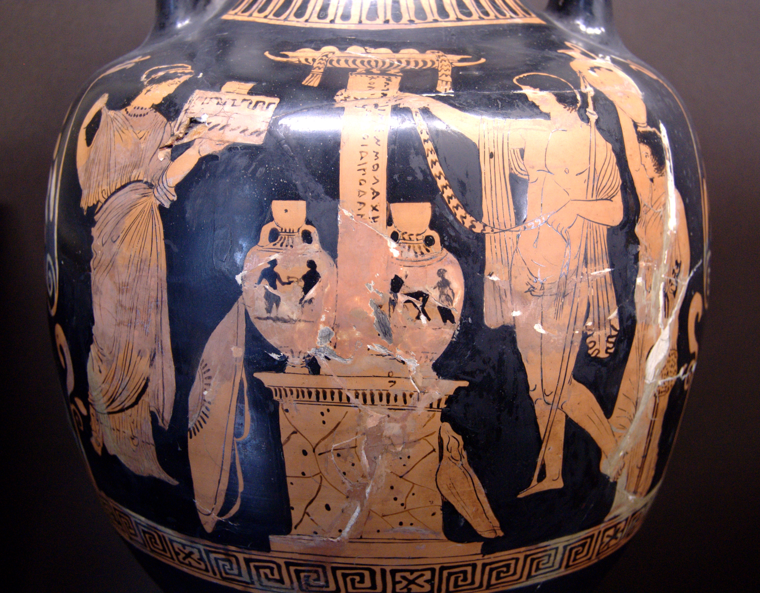 고대 그리스에서는 도시 또는 신전이 존경받는 영웅의 유해나 유품을 소유하고 있다고 주장했으며, 이는 영웅 숭배의 일환이었다.[2] 영웅과 관련된 창, 방패, 무기류, 전차, 배, 선수상, 가구, 의복 등은 신전에 전시되었다. 스파르타의 레우키피데스 신전은 레다의 알을 전시했다고 전해진다.[2] 뼈는 특별한 힘을 지녔다고 여겨지지 않았고, 기적이나 치유도 일반적으로 귀속되지 않았다.[2] 오이디푸스의 무덤은 아테네를 보호한다고 알려져 있었다.[3]