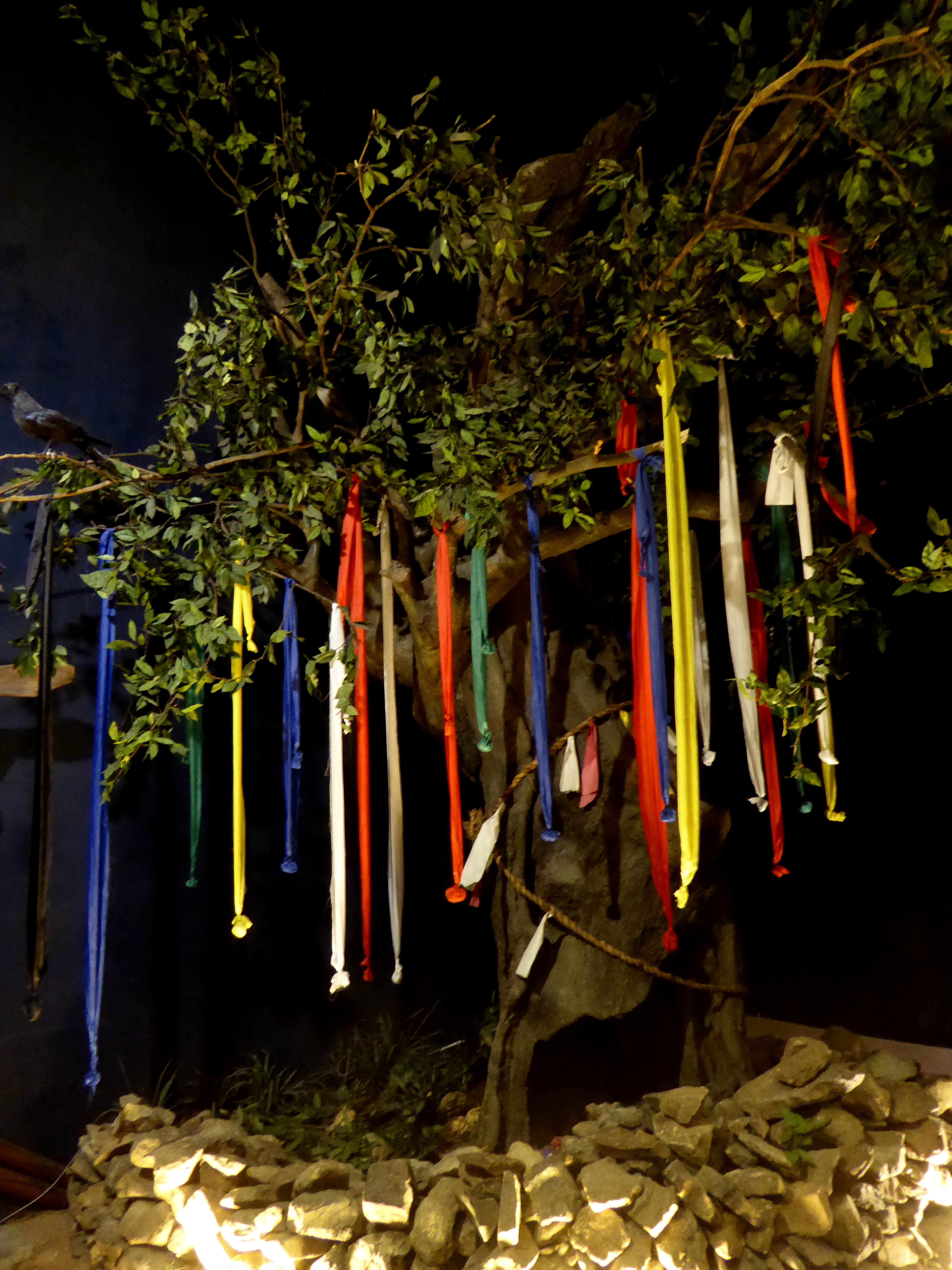 3. 돌탑 없이 성황신의 집 역할을 하는 성황나무만 있는 형태도 있다. 이 나무는 흰색 또는 오방색(빨강, 노랑, 흰색, 파랑, 녹색) 비단 조각으로 장식되었으며, 각 조각은 사방을 나타낸다. 성황나무는 신목과 동일하게 간주된다.