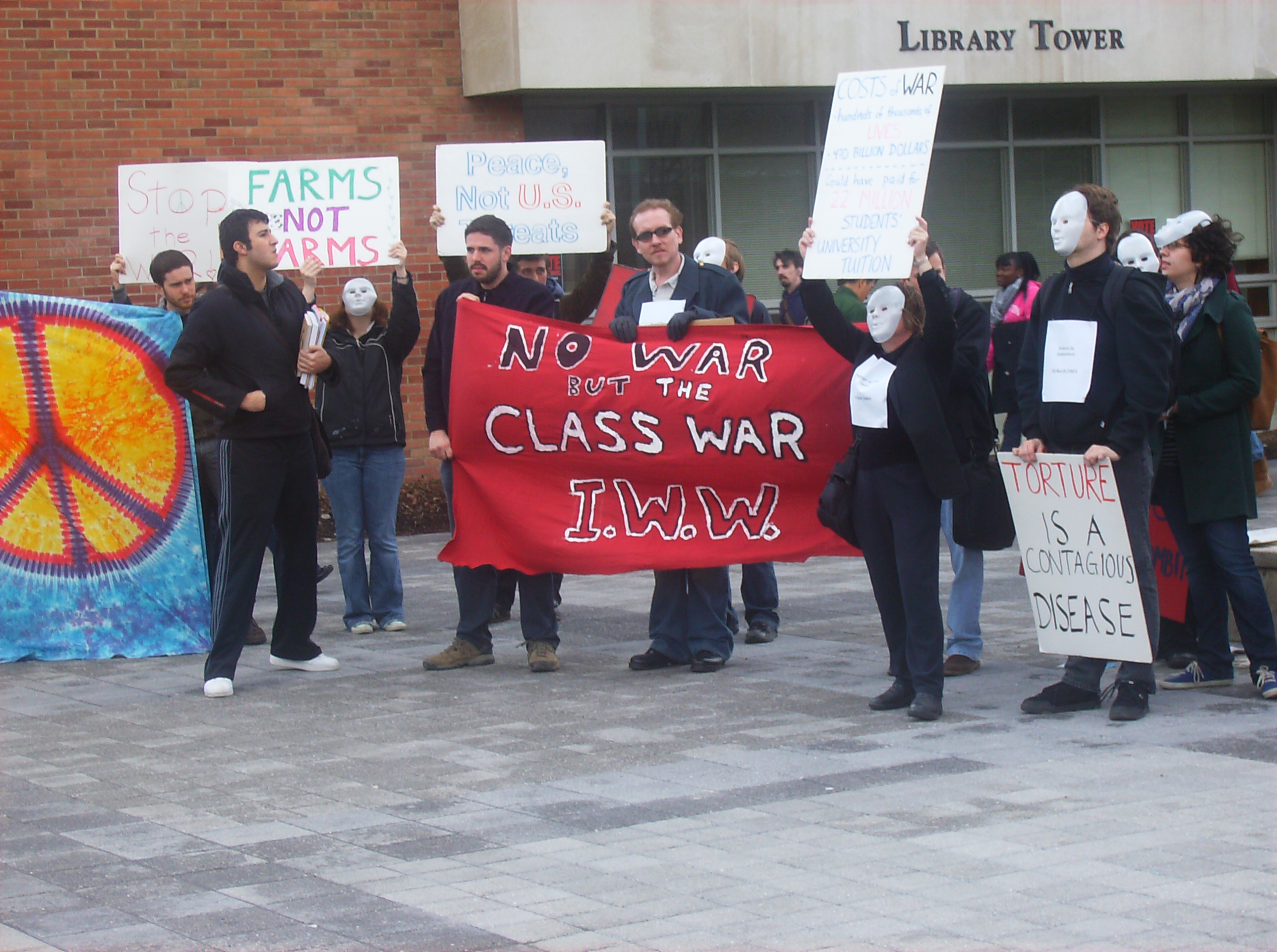 |thumb|alt=2009년 빙햄턴 대학교에서 열린 IWW 시위|2009년 빙햄턴 대학교에서 열린 IWW 시위]]