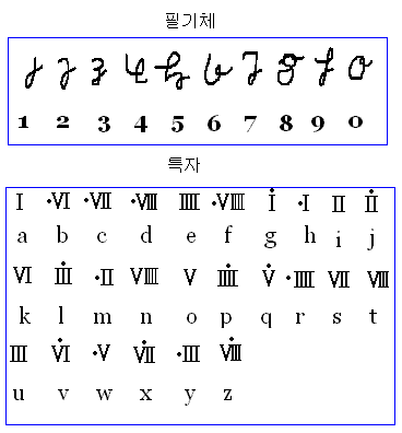 필기체와 고유 명사 표기를 위한 특수 문자도 존재한다.