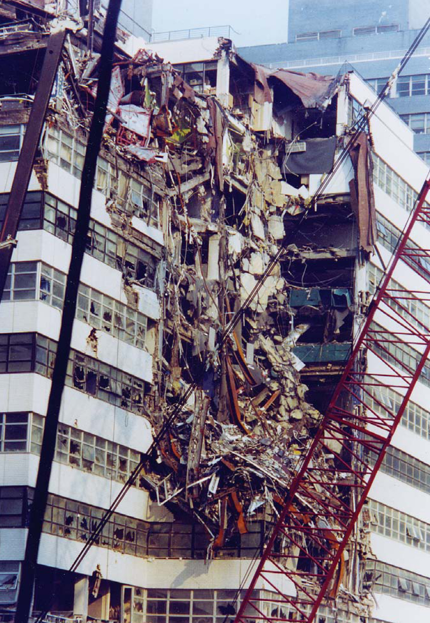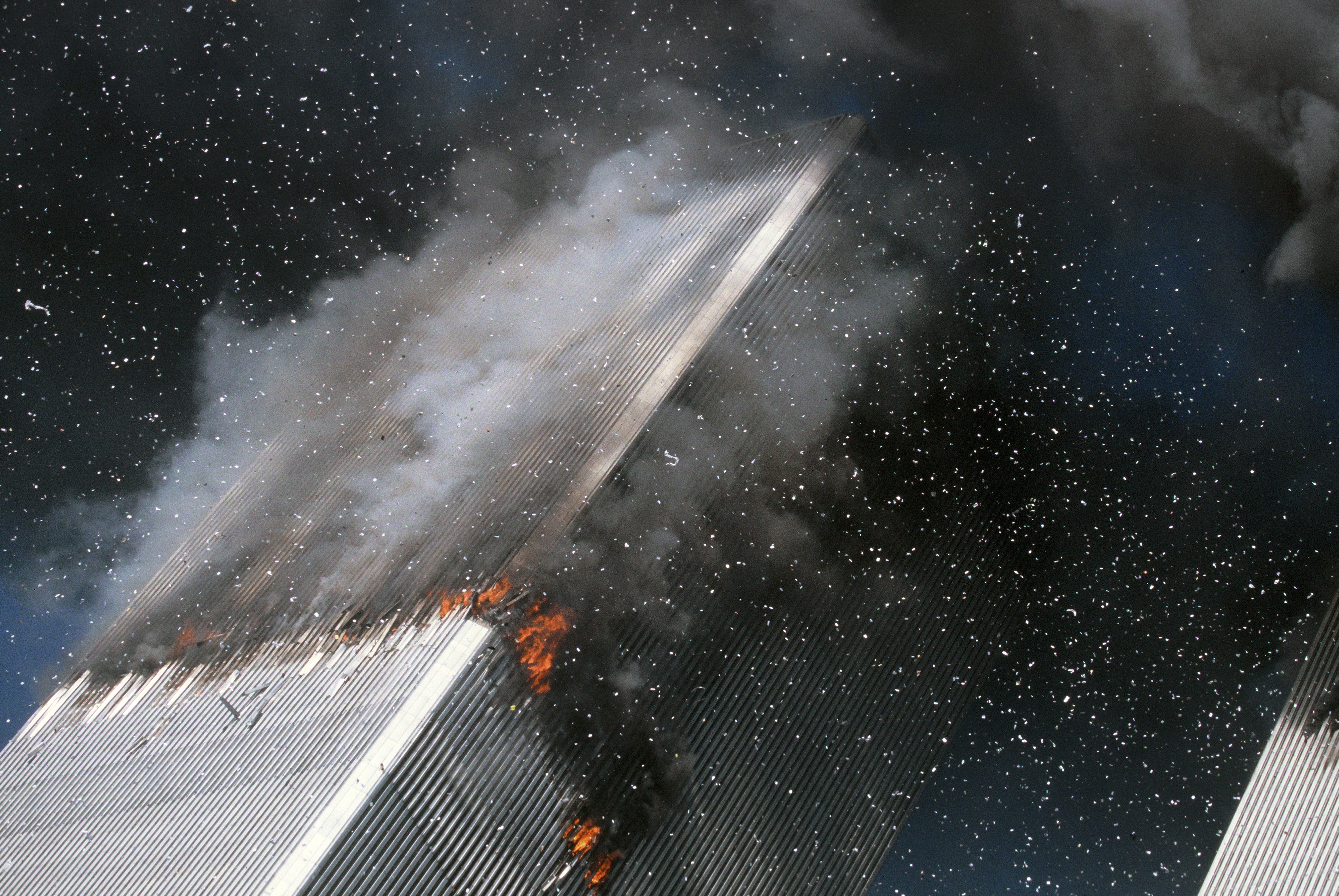 9.11 테러 당시 알카에다의 사주를 받은 테러범들이 보잉 767 여객기 2대를 납치했다. 아메리칸 항공 11편은 맨해튼 남쪽으로 비행하다 오전 8시 46분 약 708.11km 속도로 북쪽 타워 북쪽 면 93층~99층 사이에 충돌했다.[167] 17분 후, 유나이티드 항공 175편이 뉴욕 항 방향에서 날아와 오전 9시 3분 약 869.04km 속도로 남쪽 타워 남쪽 면 77층~85층 사이에 충돌했다.[152]