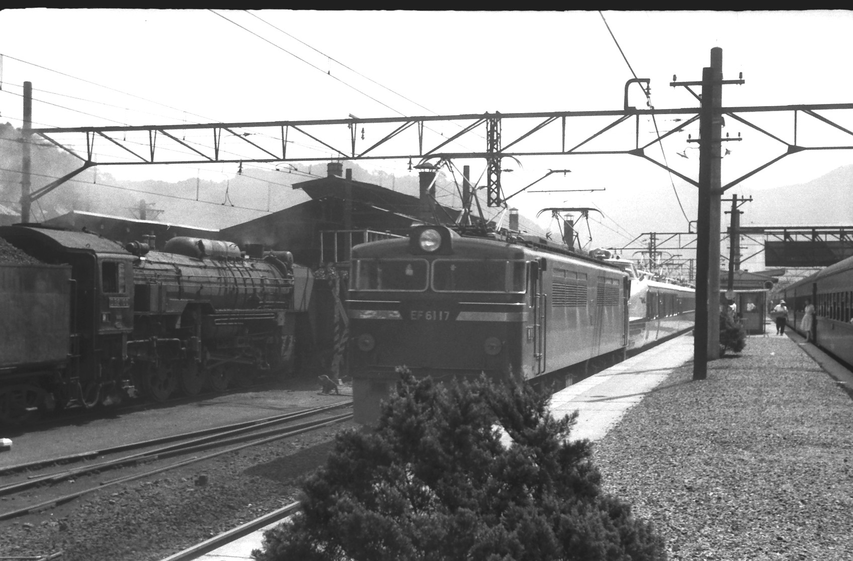 객차 열차 시대에는 상행 열차에 한해 보조 기관차(보조기)를 연결하기 위해 당역에 열차가 많이 정차했다. 때문에 쇼와 초기부터 중기까지 상행 특급 열차와 급행 열차의 정차역이 되었다. 자동문이 아니었던 시대의 일이며, 운전 정차의 개념은 물리적으로 존재하지 않았다. 다만, 수동으로나마 기기 조작으로 문을 일제히 잠글 수 있었던 20계를 사용한 특급 열차는 이 역에서 여객 취급을 하지 않았고, 나중에 보조기가 불필요한 EF65형에 의한 견인으로 바뀌면서 통과하게 되었다.[1]3. 역 구조