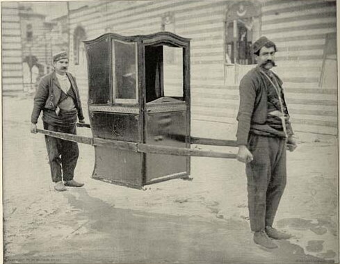가마는 정교한 가마의 일종으로, 한 명의 앉은 사람을 운반하는 데 사용되는 창문이 달린 밀폐된 상자이다. 앞뒤의 짐꾼들이 수평으로 된 장대를 이용하여 가마를 운반했다.[17] 가마는 고대 이집트, 인도, 중국보다 훨씬 이전부터 존재했다. 가마는 1630년대에 개발되었다. 어원학자들은 가마의 이름이 이탈리아 방언을 통해 라틴어 ''sedere'' 또는 "앉다"라는 의미의 프로토-인도-유럽어 어근 "''sed-''"에서 유래했을 가능성이 매우 높다고 추측한다.[18][19]