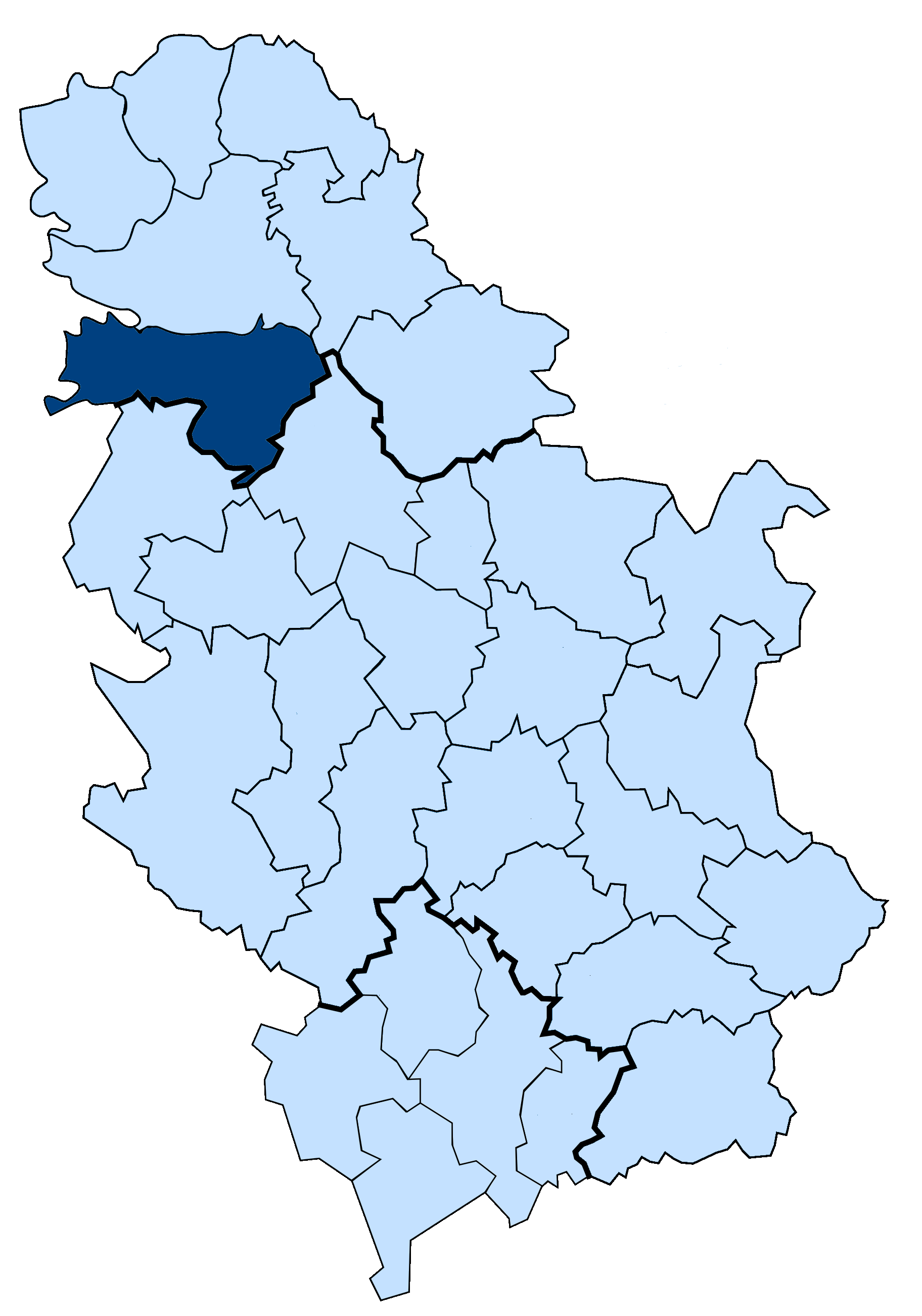 슈마디야 구 | 크라구예바츠 | 2387km2 | 290,900 | 121.8km2 | style="text-align:left"| | 174 |