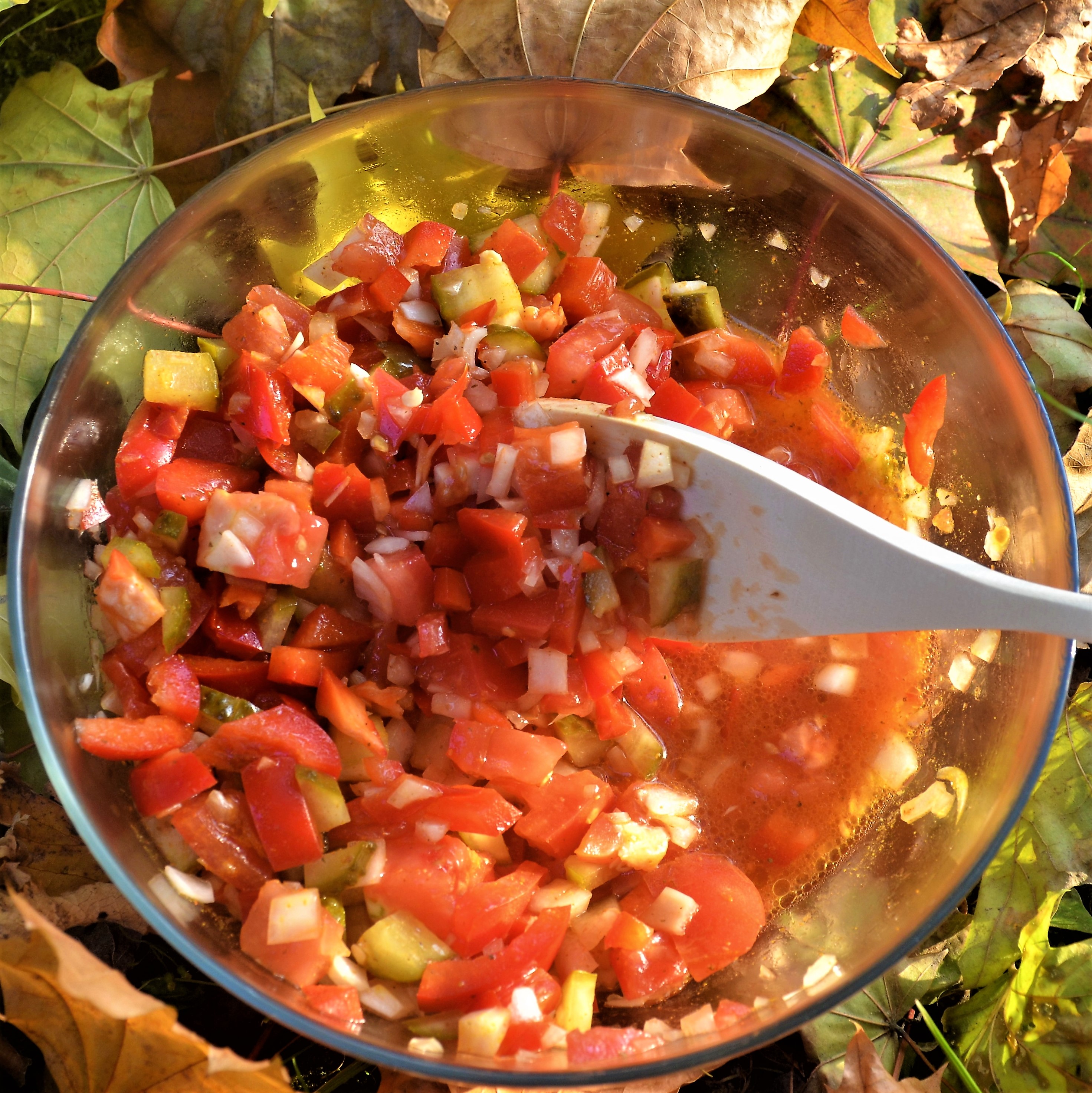 스릅스카 살라타(Srpska salata) | Српска салата | Srpska salata | 잘게 썬 토마토, 오이, 양파에 기름과 식초로 간단하게 드레싱을 한다. ![]() |
