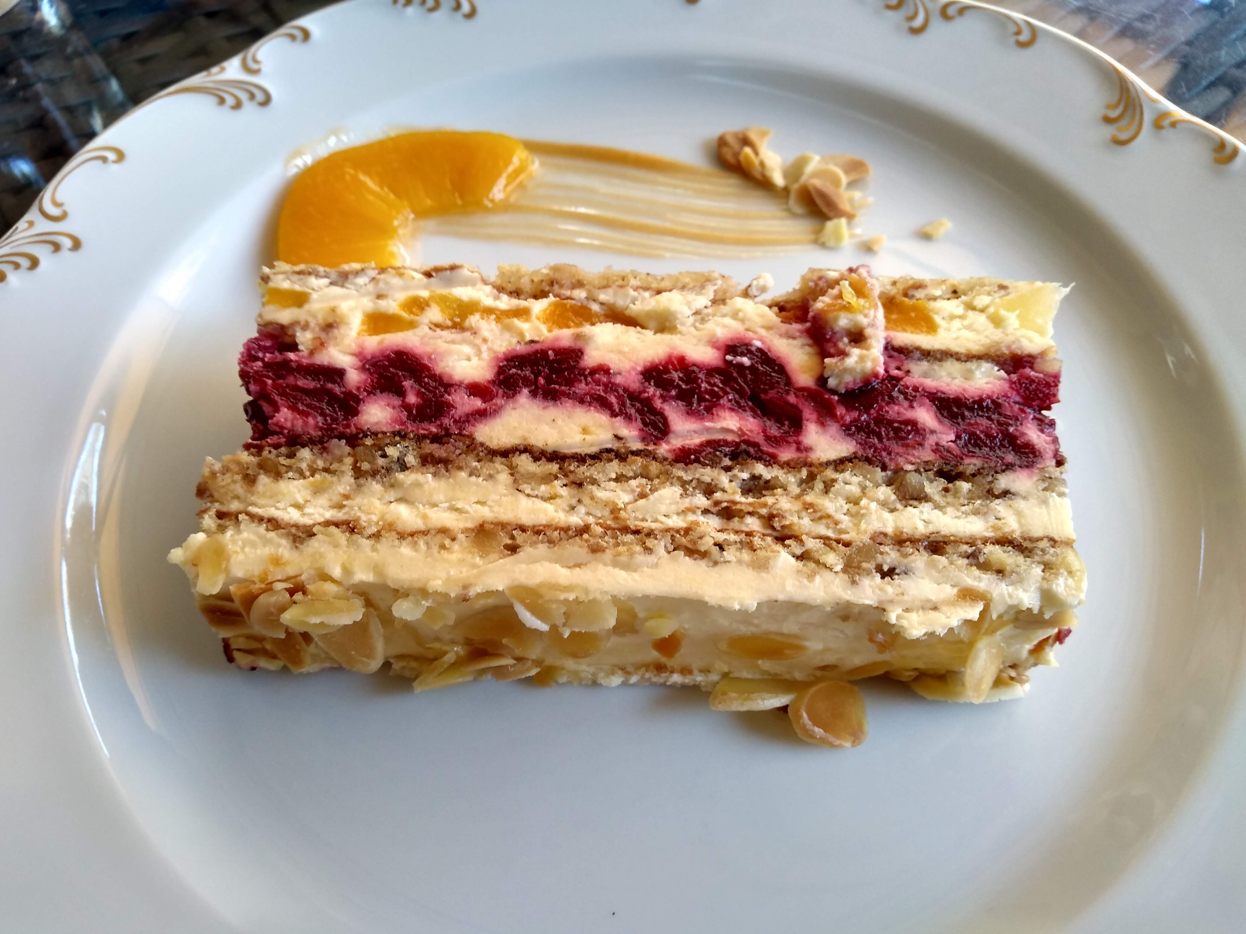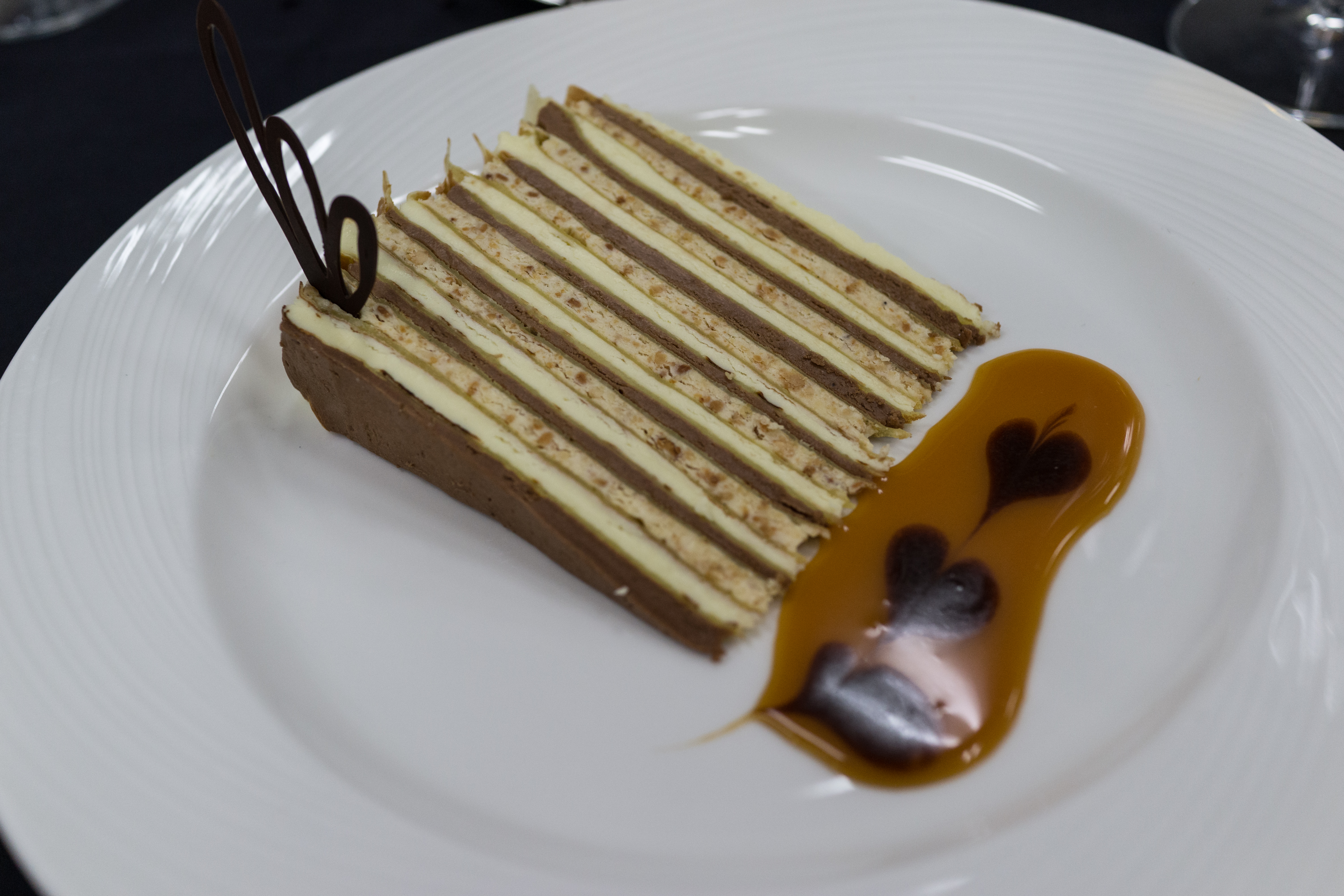 도보시 케이크 | Добош торта | Doboš torta | 5겹의 스펀지 케이크로 초콜릿 버터크림을 겹겹이 바르고 얇은 캐러멜 조각으로 장식했다. | |