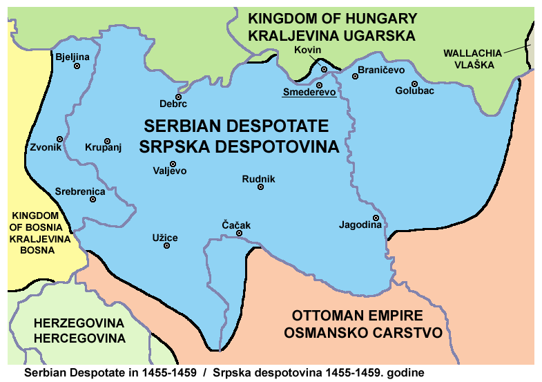 주요 지도자 | 스테판 라자레비치 (1402년–1427년) 쥬라지 브란코비치 (1427년–1456년) 라자르 브란코비치 (1456년–1458년) 스테판 브란코비치 (1458년–1459년) 스테판 토마셰비치 (1459년) |