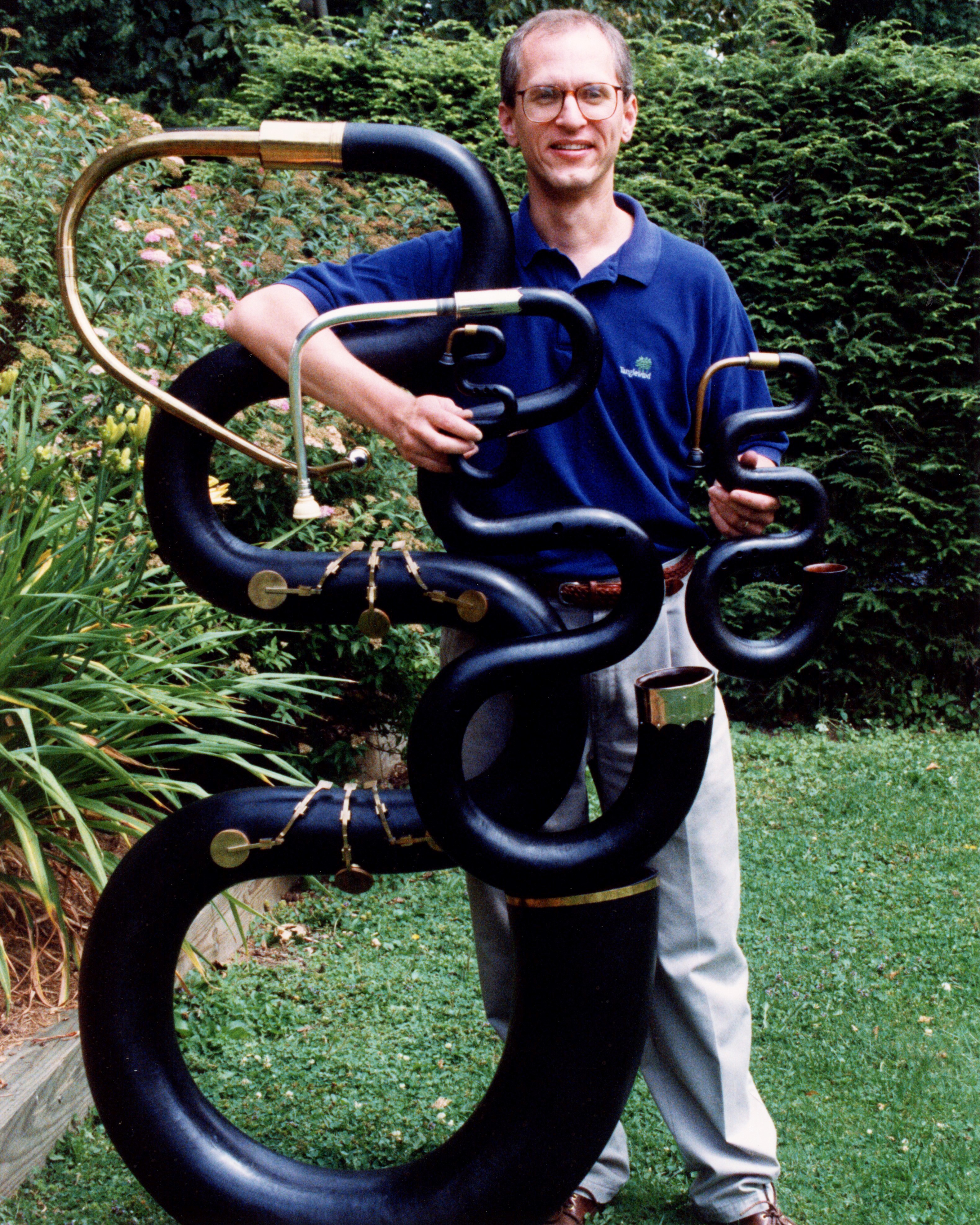 크리스토퍼 몽크는 1960년대에 현대적인 복제 세르팡을 제작하기 위해 반 사이즈 패턴을 먼저 제작했는데, 이는 4′ C의 테너 크기에 해당한다. 그는 판토그래프식 밀링 공정을 통해 패턴을 2배로 확대하여 베이스 세르팡을 조각했다. 1배로도 쉽게 조각할 수 있었기 때문에, 세르팡 앙상블에서 인기가 있었고 손가락이 작은 연주자도 사용할 수 있는 테너 세르팡도 제작할 수 있었다. 테너 세르팡은 serpet 또는 serpenteau프랑스어라고도 불린다.4. 3. 소프라노 세르팡
