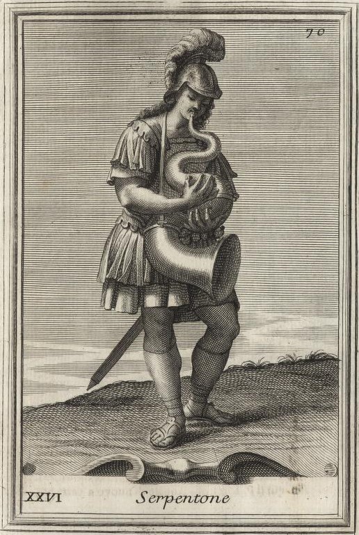 게오르크 프리드리히 헨델의 ''왕궁의 불꽃놀이''(1749)에 세르팡이 처음 등장했지만, 헨델은 나중에 이 악기를 제거했다. 19세기 초 이탈리아 작곡가들은 종종 조아키노 로시니와 빈첸초 벨리니의 오페라에서 ''세르펜토네''를 사용했다. 엑토르 베를리오즈는 ''환상 교향곡''(1830)의 초기 개정판에 세르팡과 오피클레이드를 포함시켰다. 펠릭스 멘델스존은 1828년 서곡 ''고요한 바다와 행복한 항해''와 교향곡 5번 "종교개혁" 교향곡(1830)에서 세르팡과 콘트라베이스를 짝지었다.