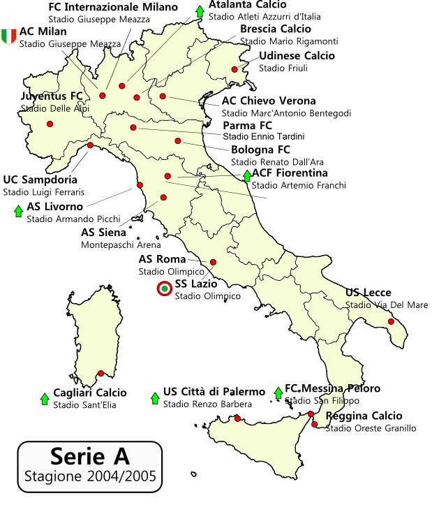 세리에 A 2004-05 참가구단 홈구장 소재지