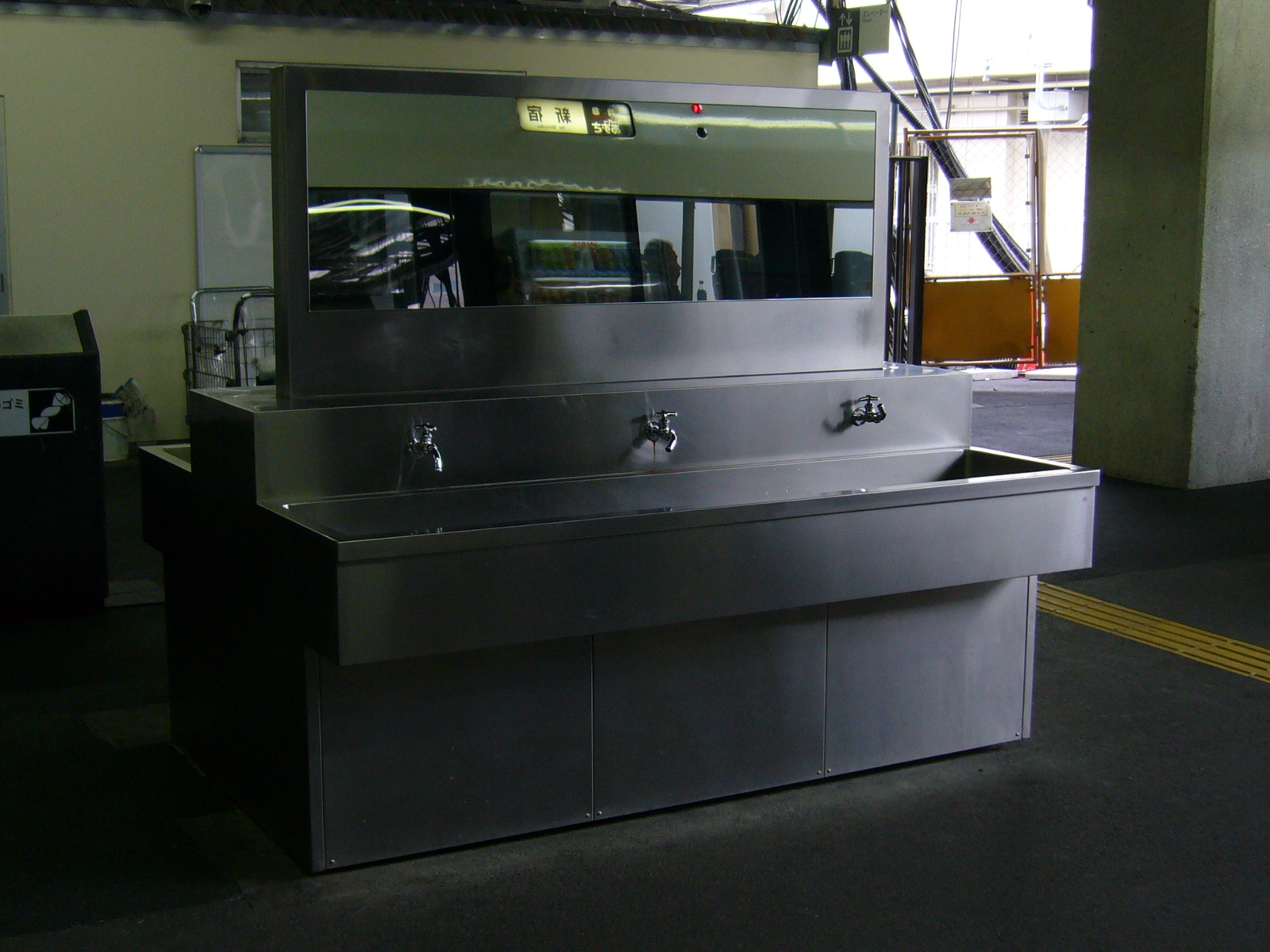 과거에는 큰 플랫폼에는 세면소가 딸린 것이 일반적이었다. 증기 기관차의 매연을 씻어낼 필요가 있었기 때문이다.