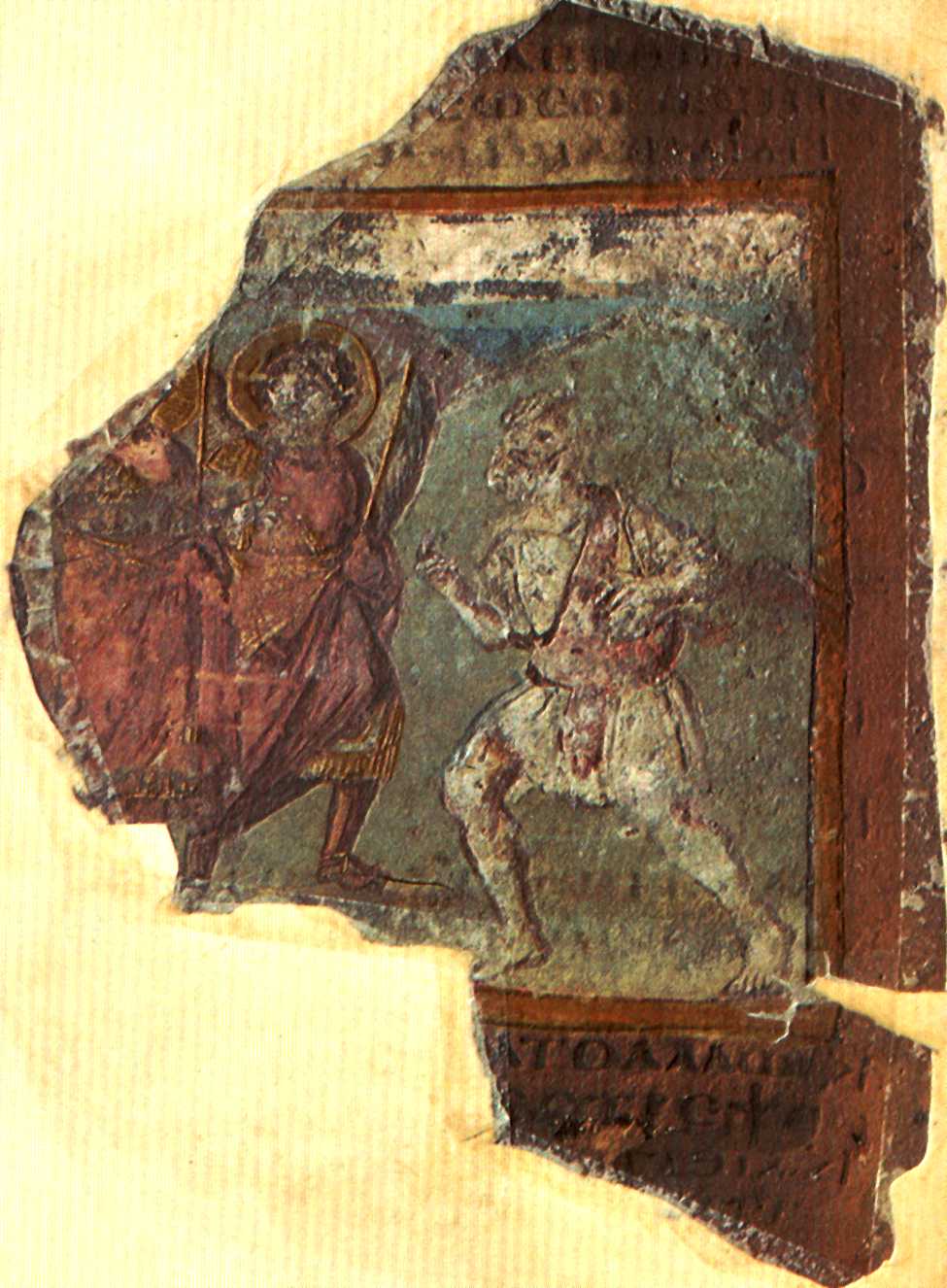 5세기경 ''일리아스'' 삽화 필사본인 암브로시아누스 일리아스에서 잘라낸 채색 세밀화도 있다. 이 그림들은 그림의 질에서 상당한 다양성을 보이지만, 초기 예술이 여전히 영향을 미치고 있음을 보여주는, 감성에 있어 매우 고전적인 훌륭한 인물 묘사의 주목할 만한 예가 많이 있다. 폼페이와 기타 프레스코처럼 자연을 따르려고 시도하고 있더라도 중세의 관습적인 의미에서 관습적이지 않고 여전히 자연을 따르려고 시도하는 풍경에 대한 이러한 지표도 있다.[2]