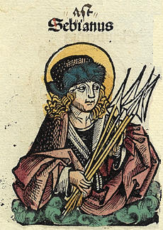 세바스티아누스는 3세기 로마 제국 군인으로, 기독교로 개종한 후 박해받다 순교한 인물이다. 갈리아 출신으로 밀라노에서 군 복무를 했으며, 기독교인들을 돕다 발각되어 화살형에 처해졌으나 살아남았다. 이후 다시 황제 앞에서 신앙을 증언하다 몽둥이로 맞아 죽임을 당했다. 흑사병의 수호성인으로 숭배받으며, 예술 작품과 문학 작품에서 순교자, 동성애적 상징으로 묘사되기도 한다. 가톨릭과 정교회에서 축일로 기념하며, 군인, 흑사병, 운동선수, 특정 도시의 수호성인으로 여겨진다.