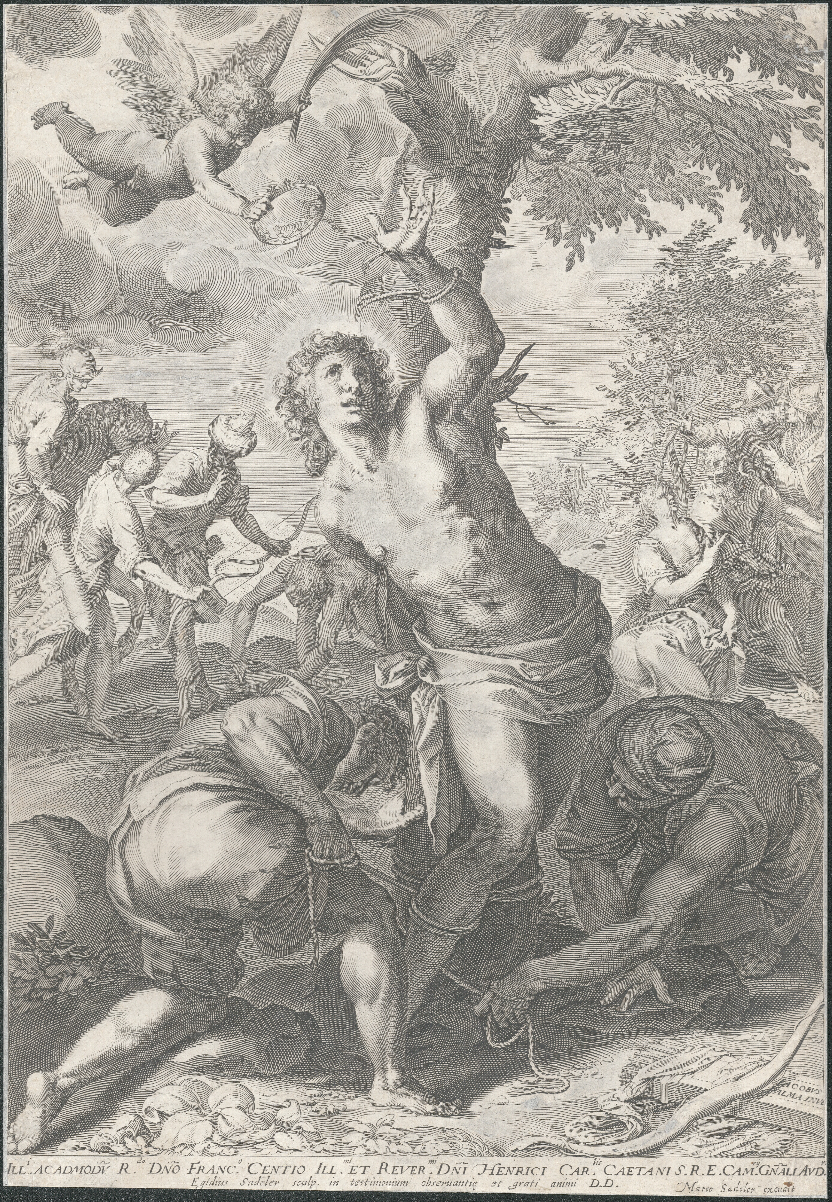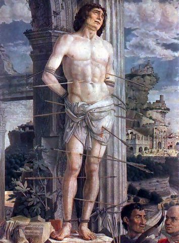 초기에는 산타폴리나레 누오보 대성당과 산 피에트로 인 빈콜리 성당의 모자이크처럼 종교적인 맥락에서 주로 묘사되었다. 그러나 르네상스 시대부터는 화살에 꿰뚫린 반나체의 젊은 남성으로 묘사되는 경우가 많아졌는데, 이는 보티첼리, 페루지노, 티치아노, 만테냐, 귀도 레니, 엘 그레코 등 많은 예술가들에게 매력적인 주제였기 때문이다.