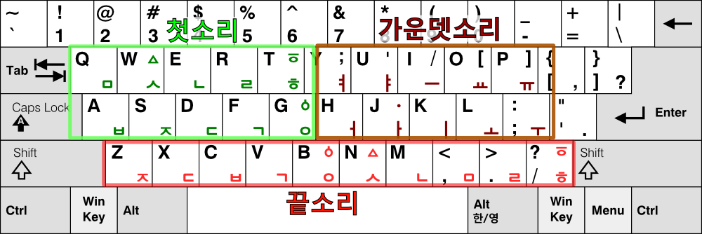 1995년에 처음 제안된 신세벌식 자판의 배열 방식과 입력 규칙