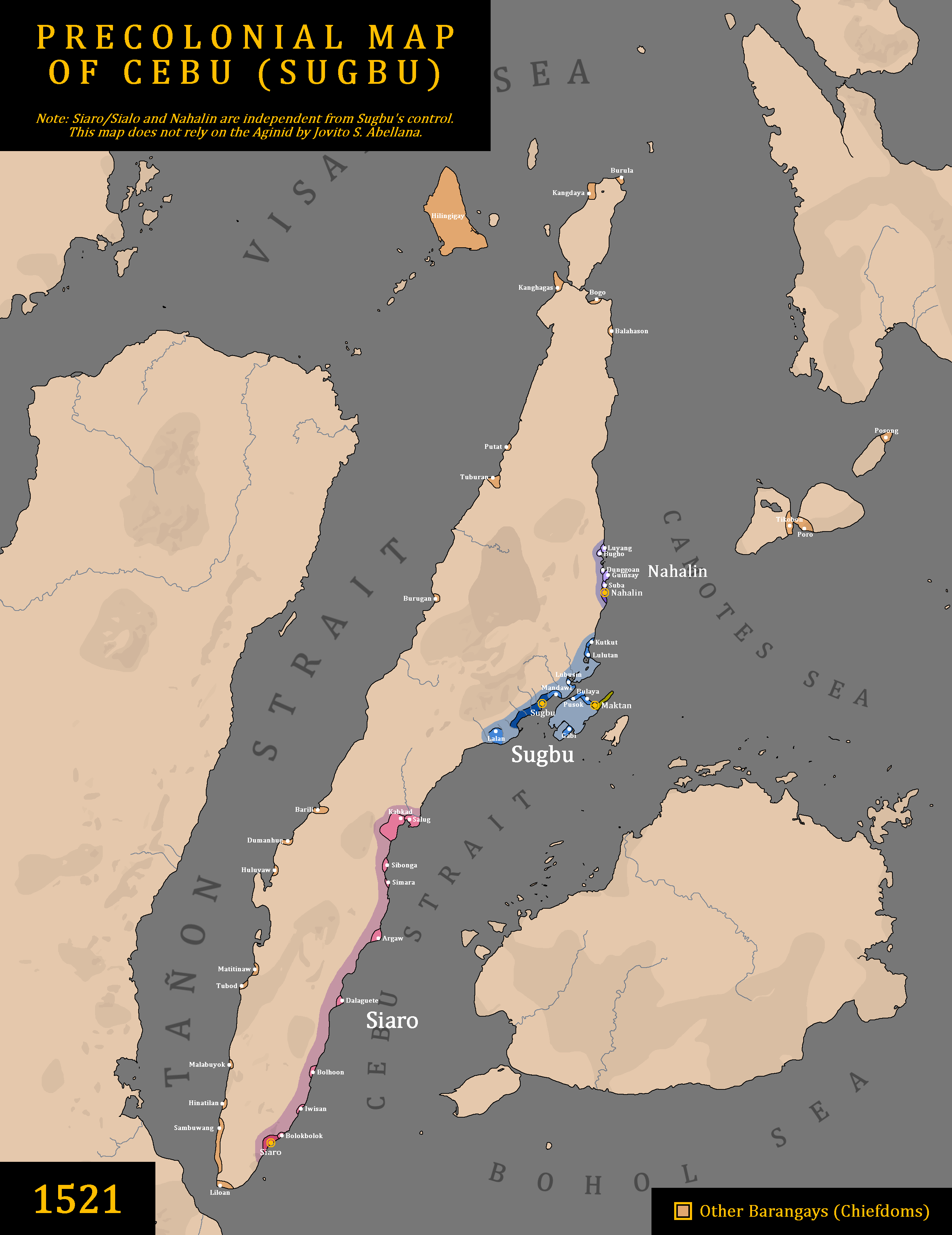 스페인 식민지 이전 시대에는 인도네시아 수마트라섬을 침략한 촐라 왕조 출신의 스리 루마이가 세부 라자나테를 건국했다.[6] 이 왕국의 수도는 싱가팔라였는데, 이는 타밀-산스크리트어로 "사자 도시"를 뜻하며, 현대 도시 국가인 싱가포르와 어원이 같다.[7][8]