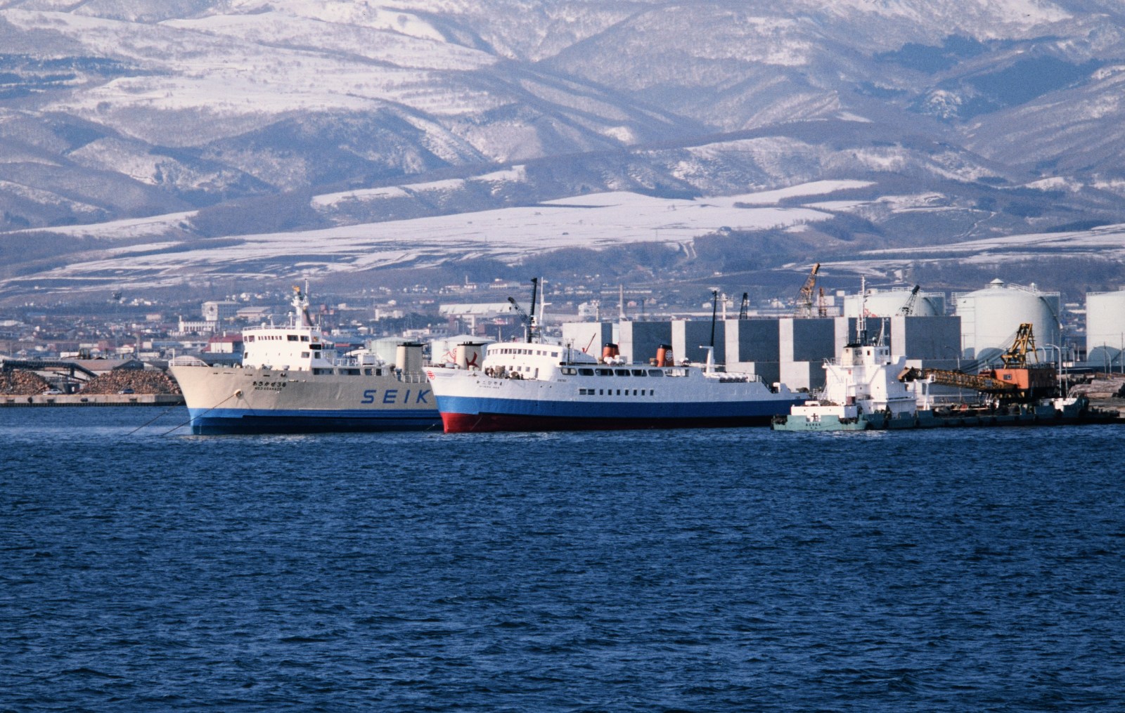 교에이운수는 1923년 4월 '''주식회사 산유상회'''로서 오타루시에서 설립되었고, 1941년 6월 현재의 '''교에이운수 주식회사'''로 사명을 변경하여 내항 운송 사업에 진출했다. 1968년 6월 본사를 하코다테로 이전했고, 1970년 9월 화물선 "하야부사"(499총톤)를 건조하여 세이칸 항로에서 자동차 운송 사업을 시작했다. 키타니혼카이운은 1944년 4월 '''아오모리 해양뗏목 주식회사'''로 설립된 후, 아오모리 해운 주식회사를 거쳐 1960년 5월 '''사사이 해운 작업 주식회사'''로 변경, 1962년 5월 일본통운 계열이 되었고, 1970년 8월 화물선 "제3 아사카마루"(678총톤)를 취항시켰다.[3]