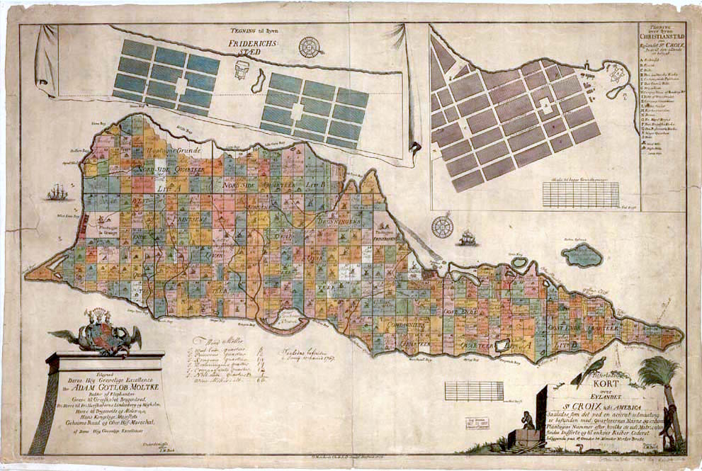 세인트크로이, 세인트토마스, 세인트존은 거의 200년 동안 덴마크령 서인도였다. 18세기 중후반, 농장 경제가 절정에 달했을 때 세인트크로이의 노예 인구는 18,000명에서 20,000명 사이였다. 이 시기 백인 인구는 1,500명에서 2,000명 사이였다.[11]