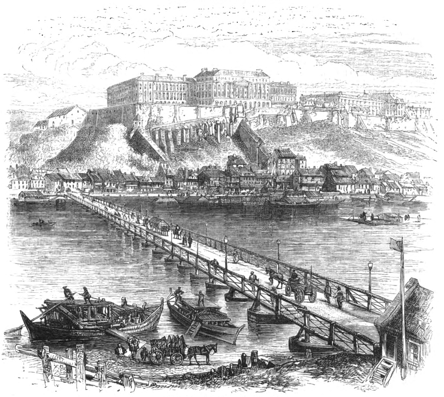 19세기 이전에는 배를 늘어놓고 다리를 놓는 "부교"나, 일종의 페리를 이용하는 "도비 다리" 등의 임시 교량이 사용되었지만, 겨울철에는 얼음 때문에 해체해야 했다.[21] 이 때문에 겨울철에는 얼어붙은 강을 건너는 것이 다리 역할을 대신했다.[21]