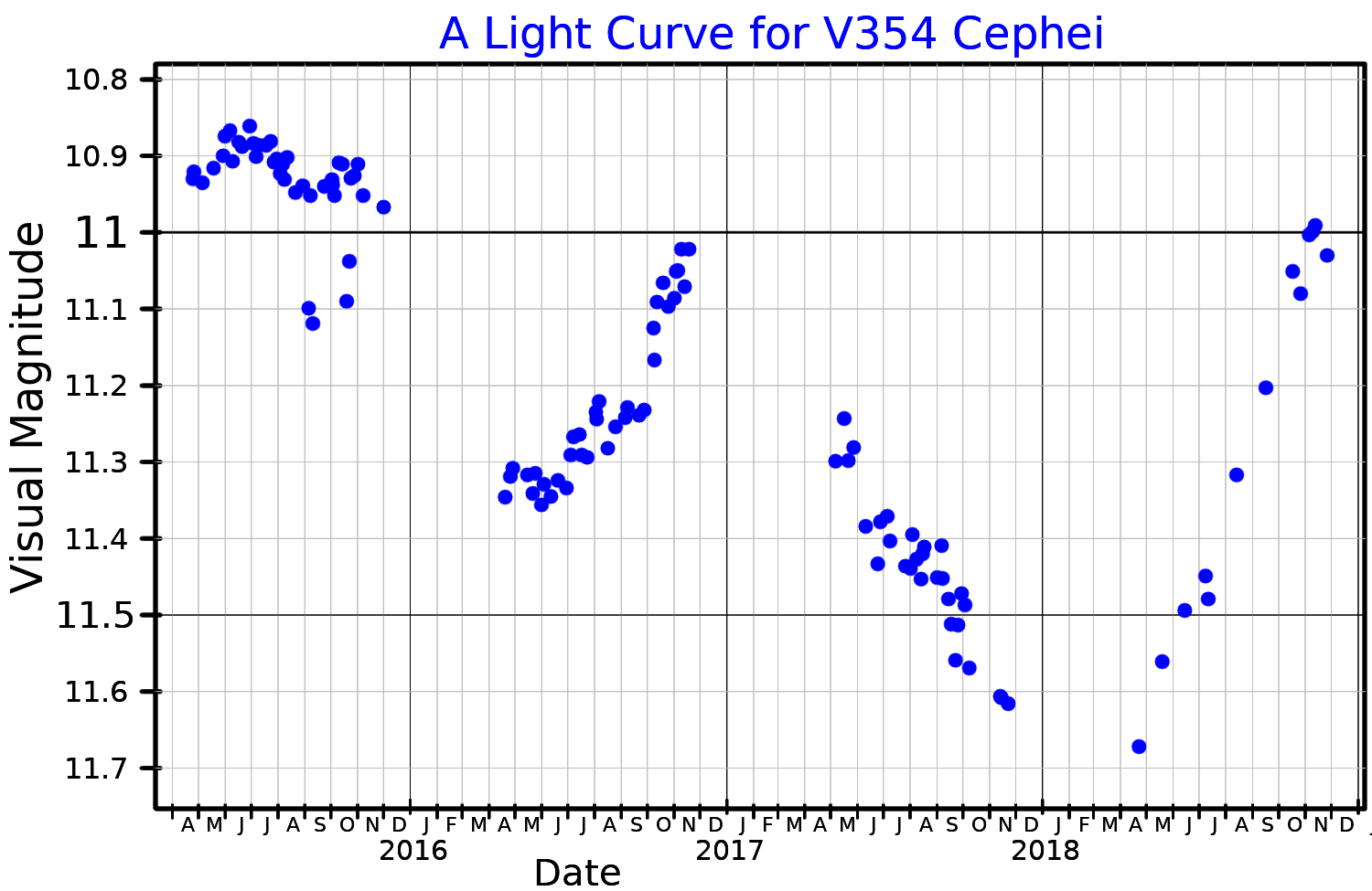 그러나 최근 연구에서는 세페우스자리 V354의 광도가 이전에 추정된 것보다 훨씬 낮은 이하일 수 있다는 결과가 발표되었다.[15][14] 2011년 연구에서는 이러한 불일치를 언급했지만, 명확한 설명을 제시하지 못했다.[15] 시각적 소멸 값에서도 큰 차이(2등급 ~ 6등급)가 나타나 논쟁이 계속되고 있다.[2][5] 더 작은 가이아 거리를 가정한 최근 데이터는 더 낮은 광도를 시사한다.[14]
