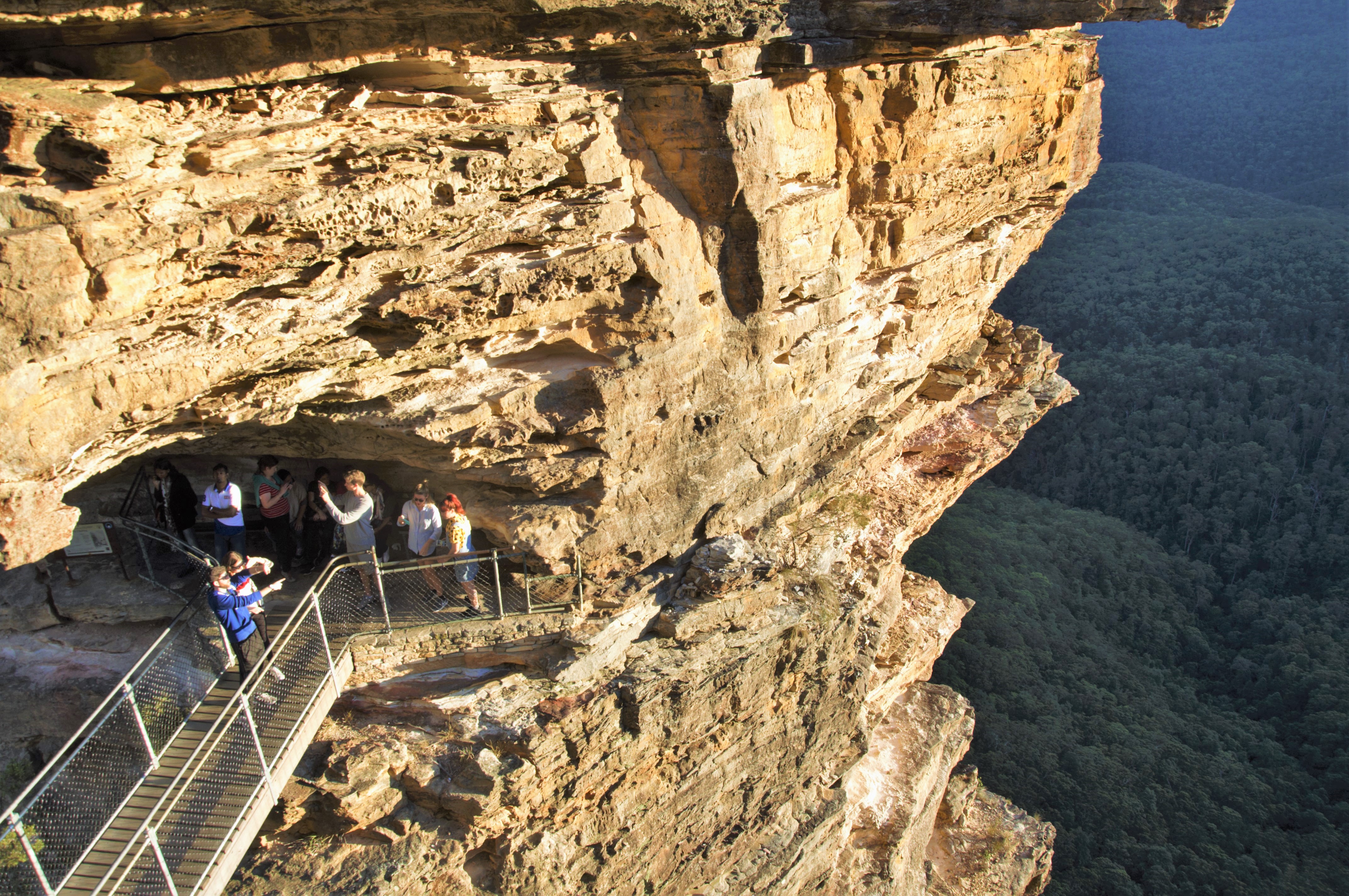 에코 포인트에서 800개 이상의 잘 관리된 강철 및 돌 계단으로 이루어진 "자이언트 계단"을 따라 세 자매봉으로 이어지고 계곡 바닥으로 내려가는 등산로가 있다. 그런 다음 연방 패스 산책로를 따라 1시간 30분 정도 걸으면 카툼바 폭포 기슭과 카툼바 시닉 레일웨이 기차역에 도착한다. 꼭대기까지 다시 올라가고 싶지 않은 등산객은 요금을 내고 시닉 레일웨이를 타고 고원으로 돌아갈 수 있다.[10]