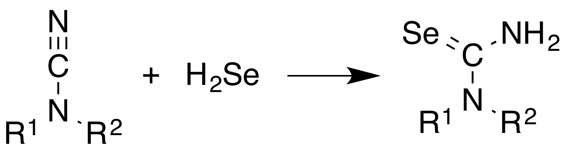 셀레늄화 수소(H2Se)는 셀레늄 함유 화합물 합성에 일반적으로 사용된다.[10] 알켄에 첨가되는 반응을 통해 다양한 유기 셀레늄 화합물을 합성할 수 있다. 예를 들어, 시아나미드로부터 셀레노우레아를 합성하는 과정에 사용된다.[10]