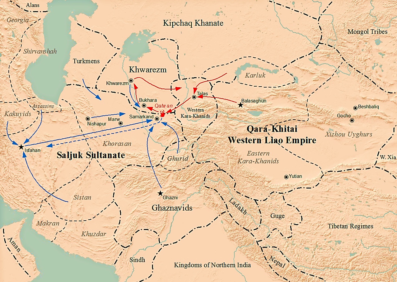 산자르는 카트완 전투 (1141년)에서 카라 키타이에게 패배하고, 1153년 오구즈 투르크족에게 사로잡히는 등 시련을 겪었다.[30] 산자르 사후 제국은 더욱 분열되었고, 1194년 호라즘 왕조에 패배하며 멸망했다.
