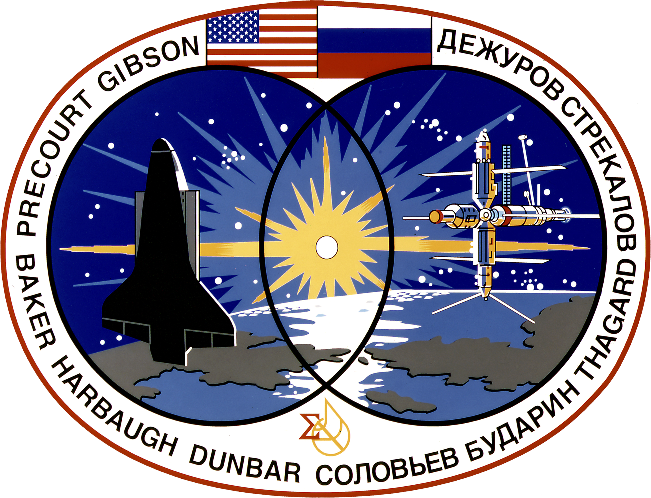 | STS-71 | 1995년 6월 27일 | 아틀란티스 | ![]() | 로버트 깁슨 외 6명 | 최초의 우주왕복선-미르 도킹, 미르 EO-19 승무원 인도, 미르 EO-18 승무원 귀환 |