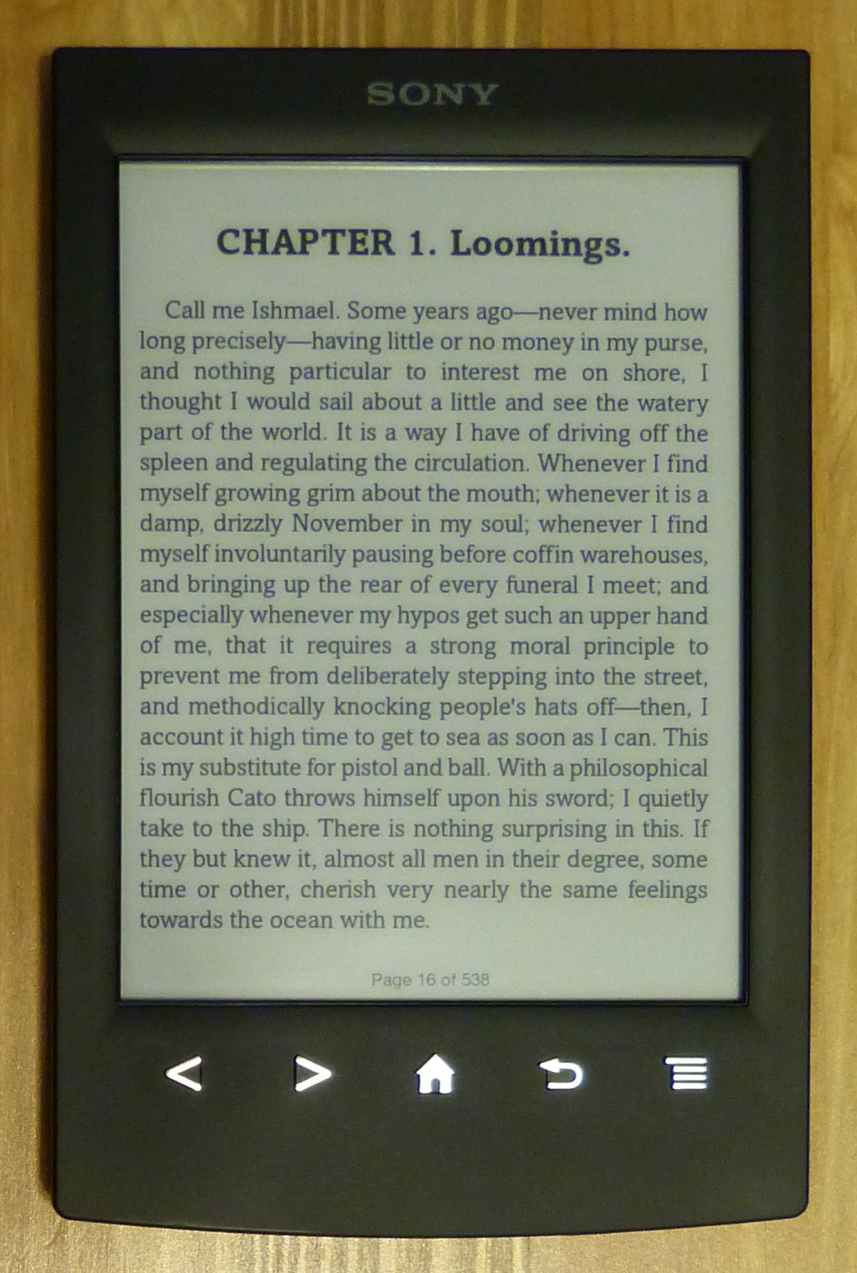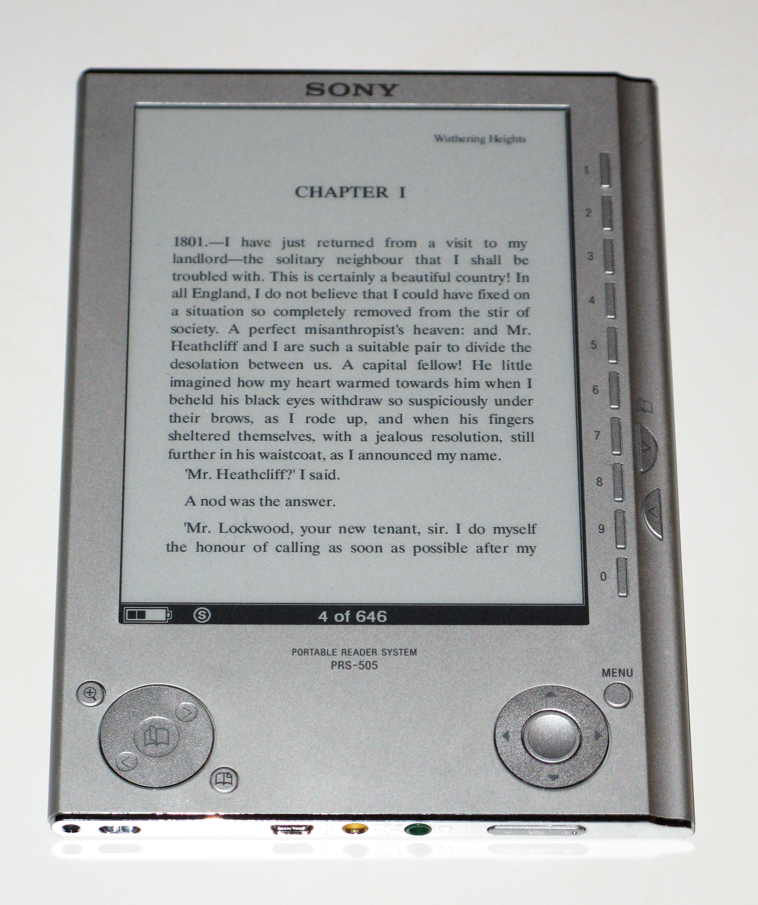 2004년 4월에 소니는 6인치 E Ink 디스플레이와 QWERTY 키보드를 갖춘 전자책 단말기 '''리브리에(Librie) EBR-1000EP'''를 일본에서 출시했다.[18]