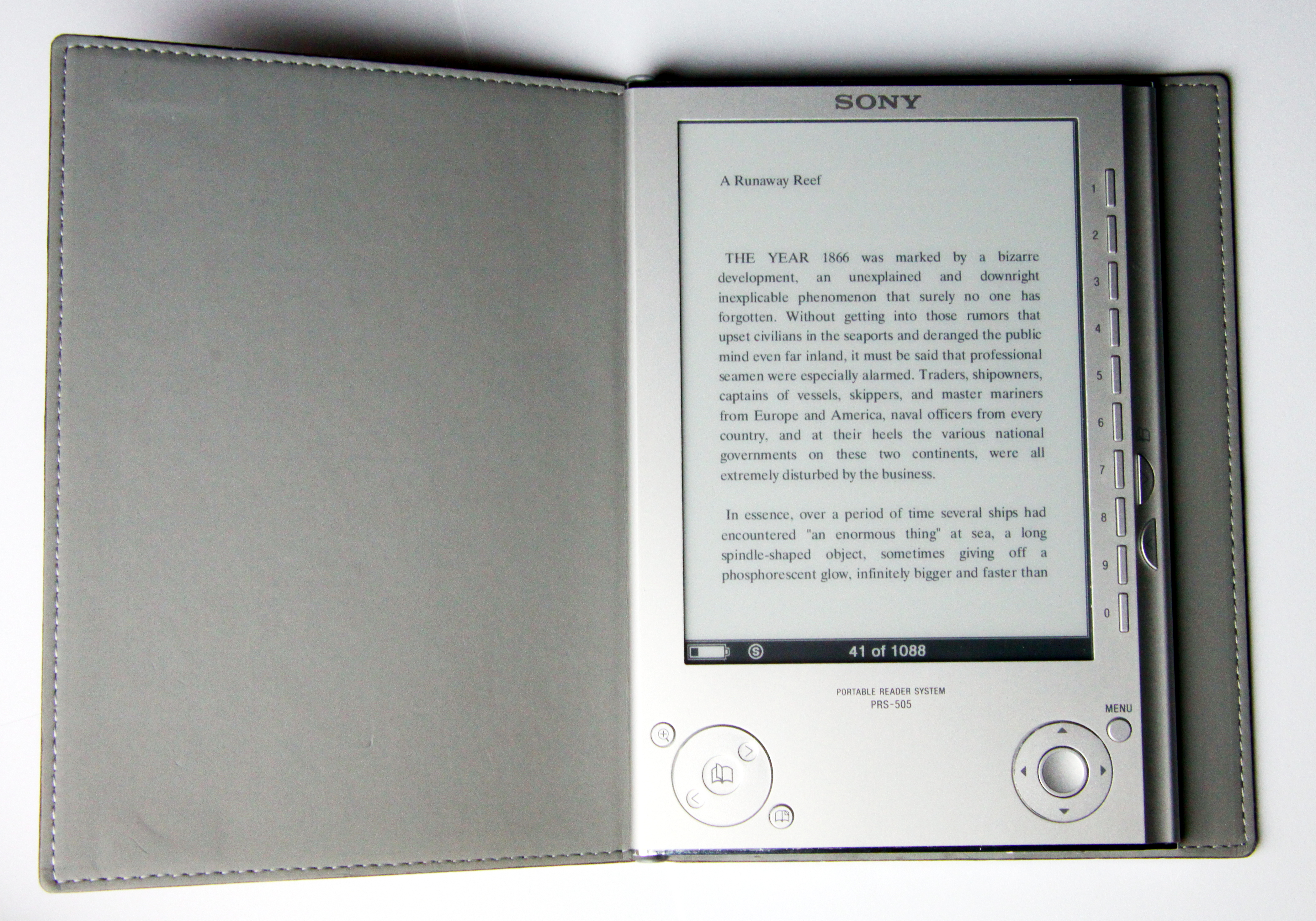 • 2006년 9월, 미국에서 휴대용 리더 시스템(PRS) PRS-500을 출시했다.[4] 11월 1일에는 미국 전역의 보더스 서점에서 전시 및 판매를 시작했다.