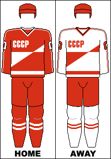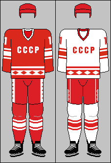 1977년까지 프로 선수는 세계 선수권 대회에 참가할 수 없었고, 1988년이 되어서야 동계 올림픽에 출전할 수 있었다. 하지만, 소련 대표팀은 항공 산업, 식품 노동자, 트랙터 산업과 같은 회사 또는 KGB, 붉은 군대, 소련 공군과 같은 조직의 정규직으로 고용된, 주로 전업 운동선수인 아마추어 선수들로 구성되어 있었다. 이러한 회사나 조직은 선수들의 아마추어 신분을 유지하기 위해 퇴근 후 사회 스포츠 클럽 하키팀을 운영하는 것처럼 보였다.[18][19][20] 1970년대에 들어서자, 캐나다를 비롯한 여러 국가의 하키 연맹들은 동구권 팀 선수들의 아마추어 신분 이용에 항의했고, 1972년과 1976년 동계 올림픽에서 항의 표시로 철수하기도 했다.[21]7. 유니폼