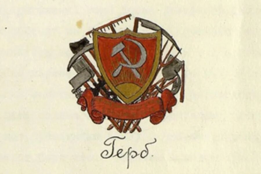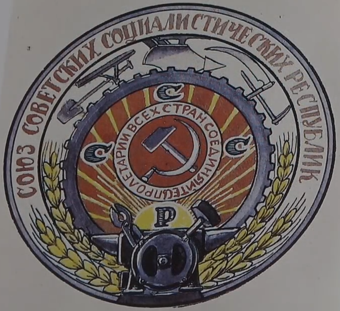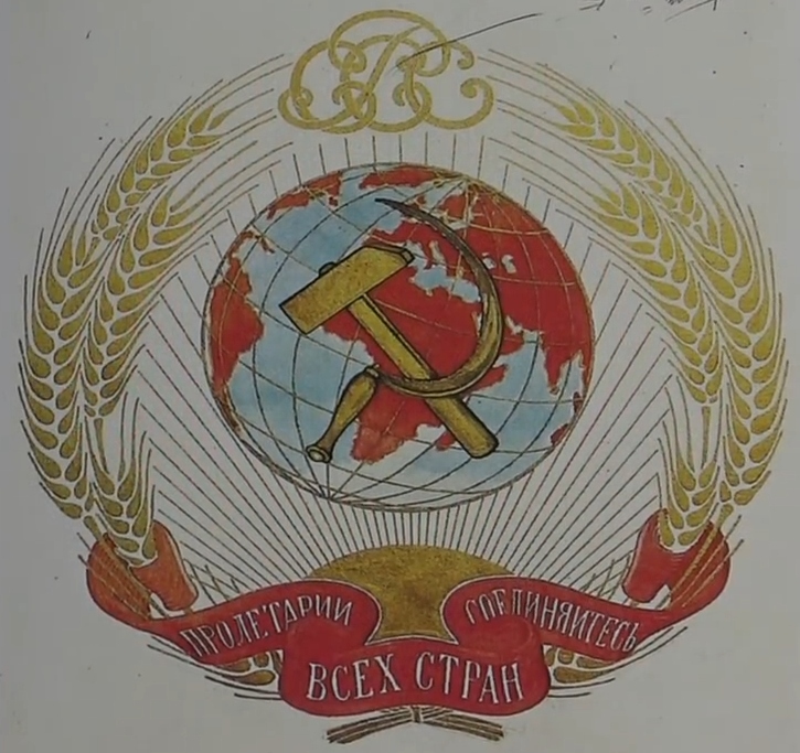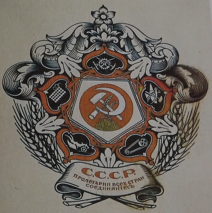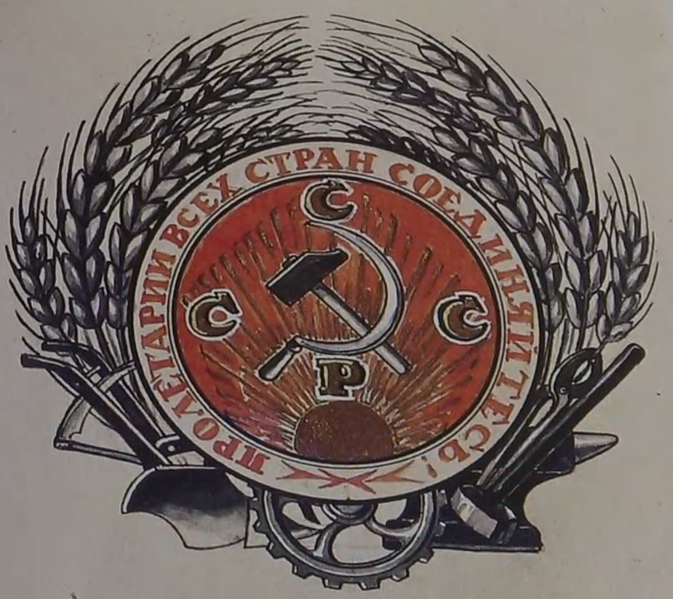 소련 국장의 첫 번째 버전은 1923년 7월 6일 소비에트 연방 중앙 집행 위원회(CIK)의 제2차 회의에서 채택되었으며, 그해 9월 22일에 완성되었다.[3]