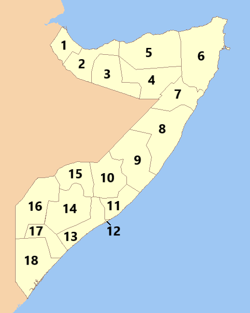 소말리아는 1960년 영국령 소말릴란드(당시 독립국 소말릴란드국)와 이탈리아령 소말릴란드가 합병하여 탄생했다. 소말리아 정부는 지방 행정 제도를 정비했지만, 1969년 모하메드 시아드 바레 주도의 쿠데타로 모든 지방 자치 단체는 정부 통제 하에 놓였다. 바레는 독재 체제를 강화하면서 자신의 출신 씨족을 우대하여 다른 씨족들의 불만을 야기했다. 1986년, 바레 정권에 반대하는 반란이 전국 각지에서 발생하면서 중앙 정부는 지방 통제력을 점차 상실했다. 정권 말기에는 중앙 정부 통치력이 수도 모가디슈에만 국한되었고, 바레는 "모가디슈 시장"이라는 조롱을 받을 정도로 권위가 추락했다. 1991년 1월, 반정부 세력인 통일 소말리 회의가 모가디슈를 점령하고 바레를 국외로 추방했지만, 통일 소말리 회의는 내부 권력 다툼으로 분열되었다. 이 혼란 속에서 5월, 구 영국령 지역은 소말릴란드 공화국으로 독립을 선언했고, 소말리아는 분단되었다. 이후 소말리아는 무정부 상태의 내전 상황에 돌입했으며, 지방 행정 제도는 완전히 붕괴되었다.[5]