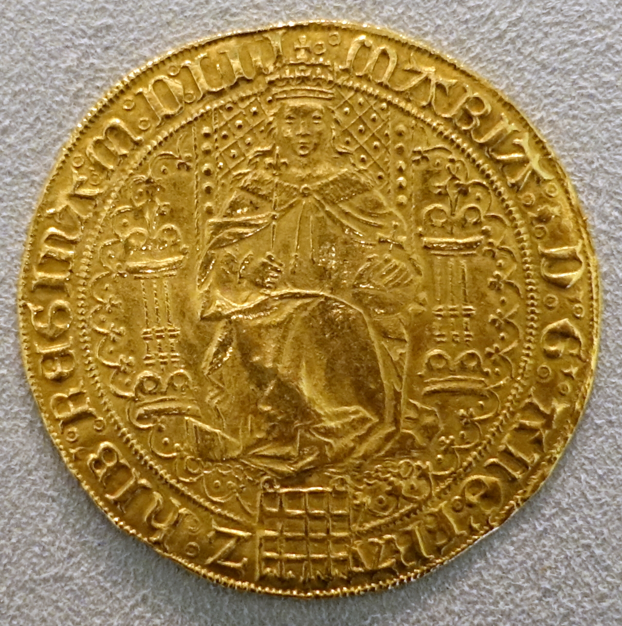1553년 주조]]소브린(Sovereign)이라는 금화는 1489년 헨리 7세 시대에 발행된 무게 240 그레인의 금화가 20 실링과 같은 값으로 된 것이 최초이다. 이 금화는 그 전까지 유통되던 천사가 그려진 Angel (coin)|엔젤 금화영어와는 달리, 옥좌에 앉은 국왕이 그려져 있었기 때문에 소브린(군주)이라고 명명되었다.[50]