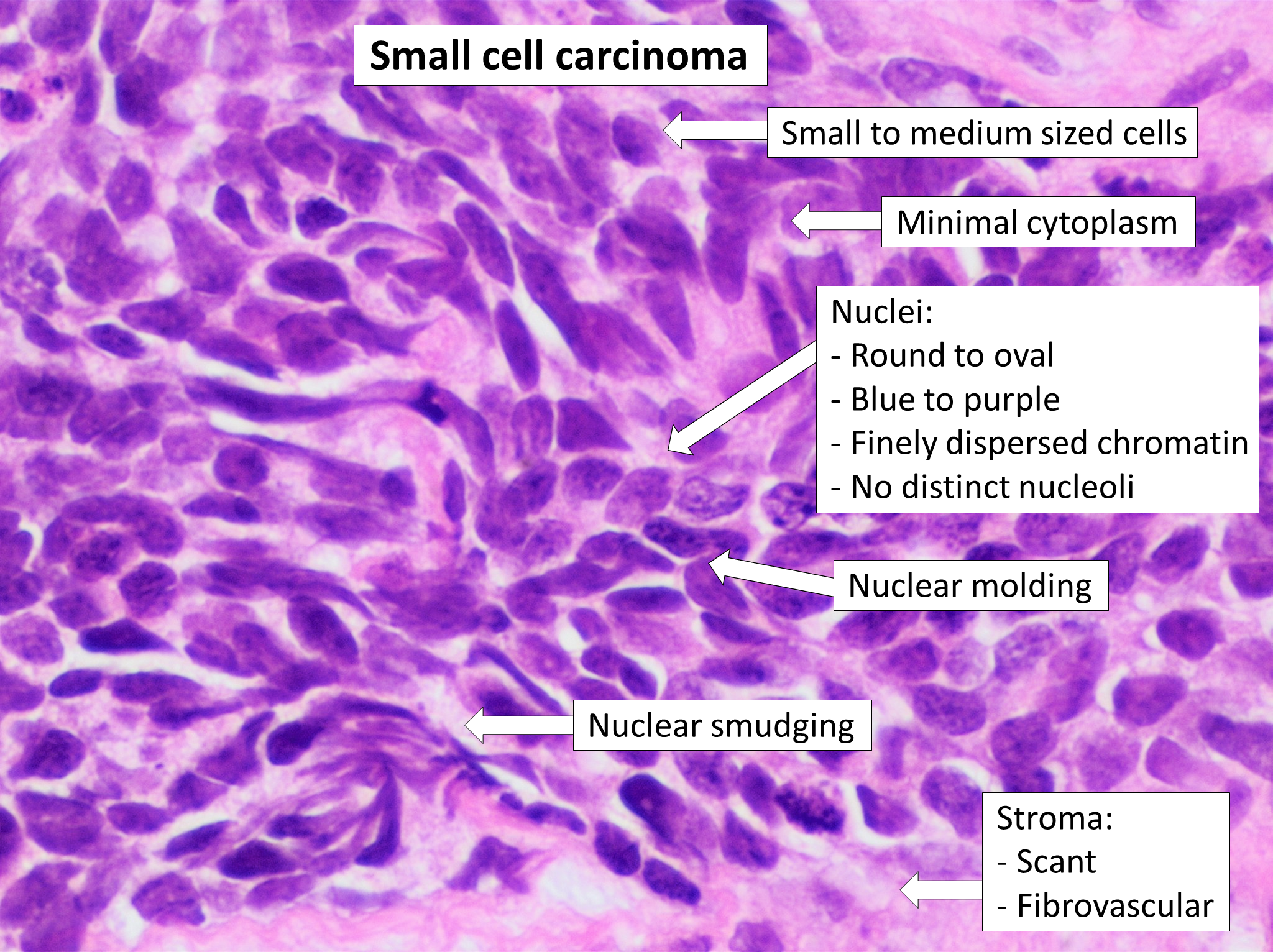 소세포암종은 미분화된 신생물로, 원시적인 세포로 구성된다. 이름에서 알 수 있듯이 소세포암종의 세포는 정상 세포보다 작으며, 세포질을 위한 공간이 거의 없다. 일부 연구자들은 이를 세포 크기를 제어하는 메커니즘의 실패로 간주한다.