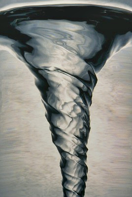 공기 중의 소용돌이 중심은 때때로 수증기가 응결되어 보일 수 있는데, 이는 중심의 낮은 압력이 단열 냉각을 유발하기 때문이다. 토네이도의 깔때기가 그 예이다.