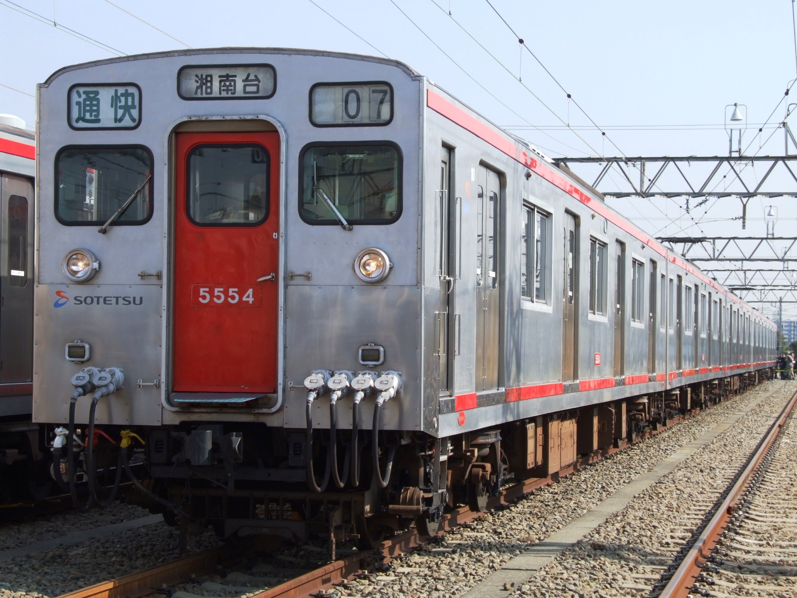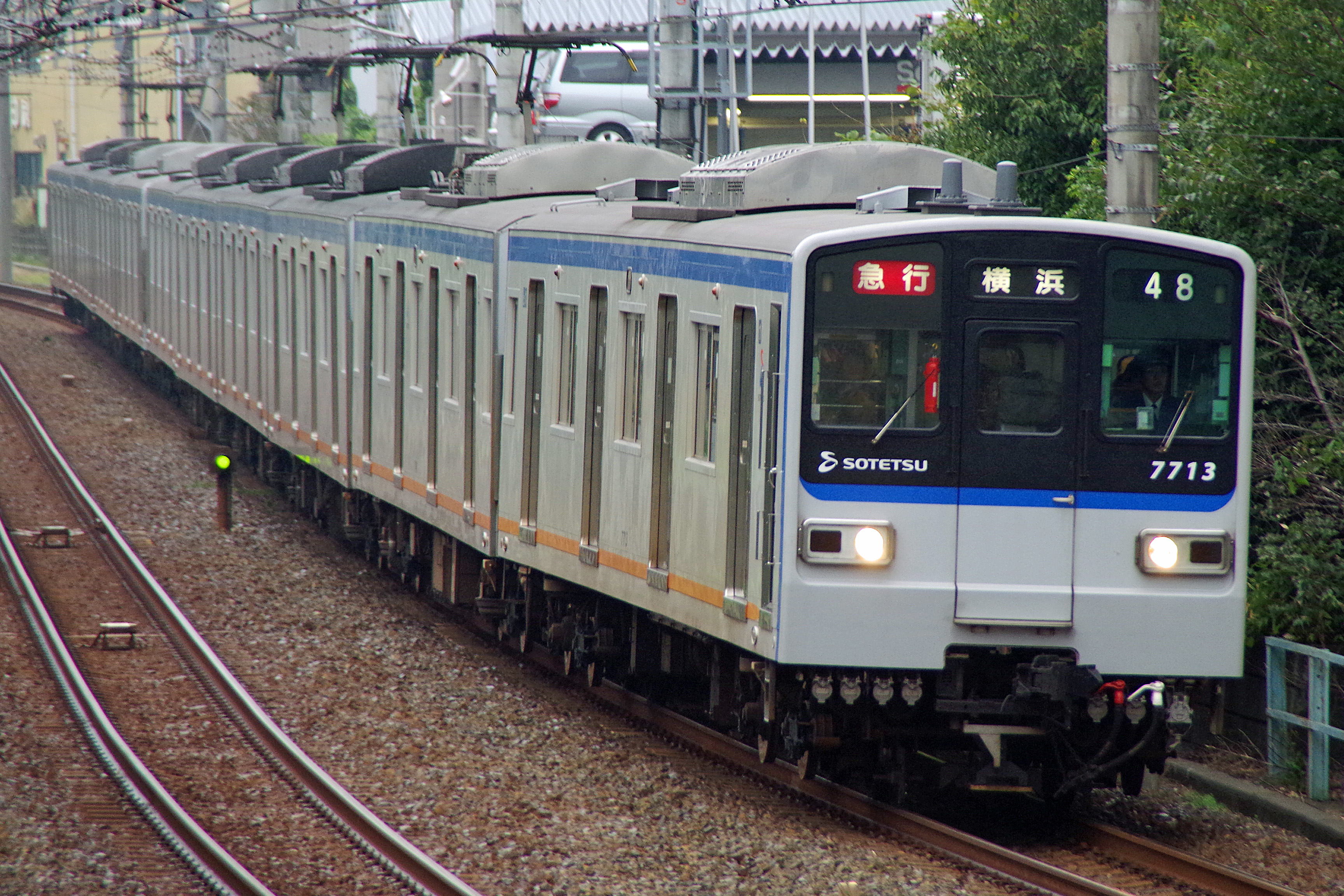特急|톳큐일본어는 낮에만 운행되며 정차역이 가장 적다.[44] 영어 표기는 '''Limited Express'''이다. 종류 표시기의 표기는 '''特'''이다. 종류 색상은 주황색(소테쓰선 내 완결)[42]·녹색(JR 사이쿄선 직통)·분홍색(도큐 도요코선 직통)·하늘색(도큐 메구로선 직통)[43]이다. 2014년 4월 27일 다이어 개정으로 신설된 종류로, 소테쓰선 내에서 가장 빠르다.과거에는 요코하마역을 경유하지 않는 가나가와 동부 방면선(2019년 개업한 소테쓰 신요코하마선) 건설이 진행됨에 따라 요코하마역의 공동화를 피하기 위해 설정되었다.[45] 요코하마역과 그 주변 시설의 리뉴얼과 함께 "현 중앙 지역과 요코하마역을 더 빠르게 연결하여 이용객의 이탈을 억제"하기 위한 목적이었다. 2019년 11월 30일 다이어 개정에서는 니시야역이 정차역이 되었고,[24] 2023년 3월 18일 개정으로 특급 정차역은 그 이하 모든 종류의 정차역이 되었다.
