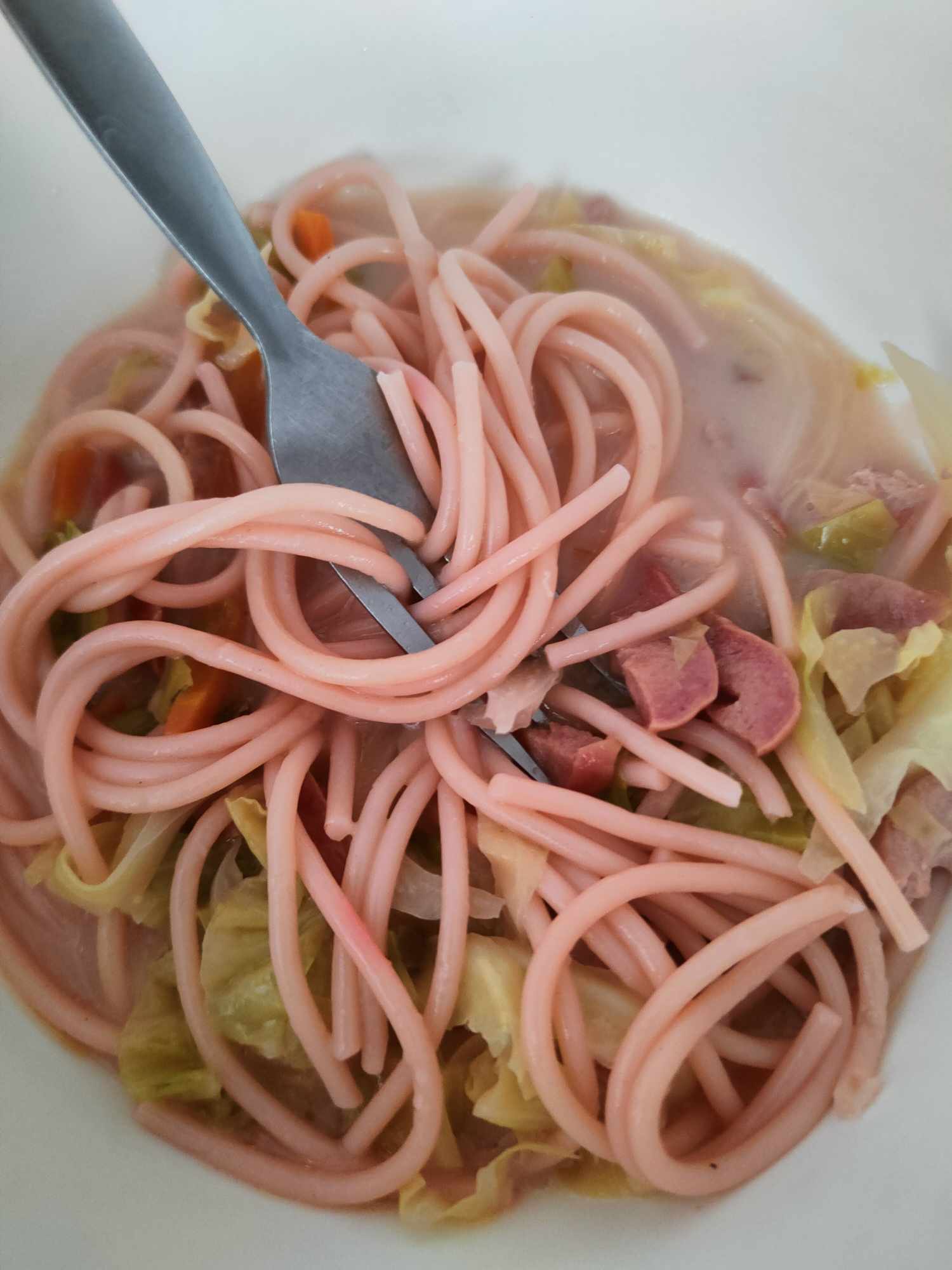 잘게 썬 다양한 채소를 넣고 부드러워질 때까지 익힌다. 가장 흔하게 사용하는 채소는 당근과 셀러리이다.[6][20] 굵게 썬 양배추도 자주 들어가는데, 보통 요리가 거의 완성될 때쯤 넣는다.[9][23] 조리법에 따라 잘게 썬 감자, 완두콩, 강낭콩, 또는 ''킨차이''(중국 샐러리)나 미나리를 추가하기도 한다.[7][8][21][22] 채소를 전혀 넣지 않는 경우도 흔하다.[3][17]