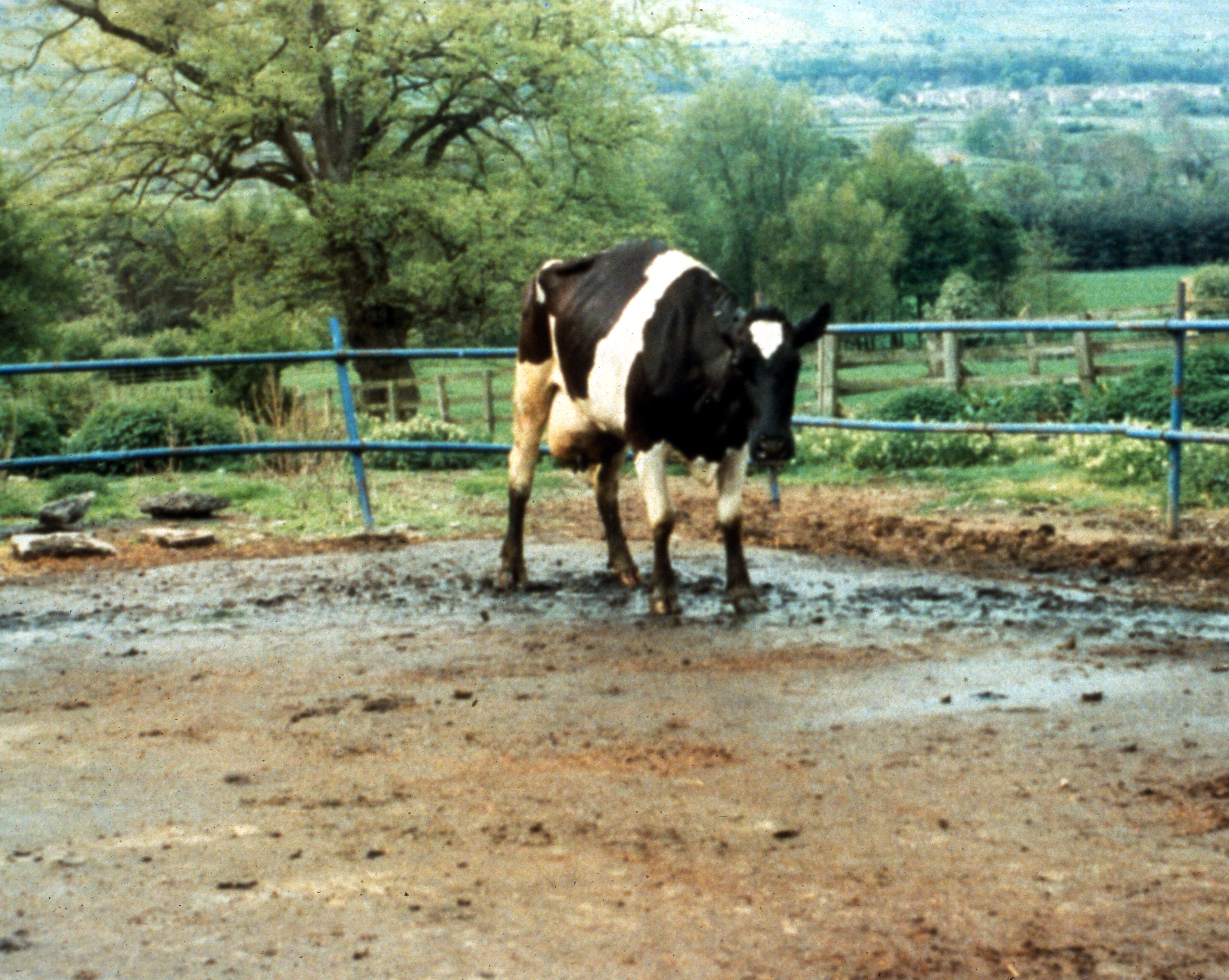 BSE에 걸린 이 소는 비정상적인 자세와 체중 감소를 보인다.