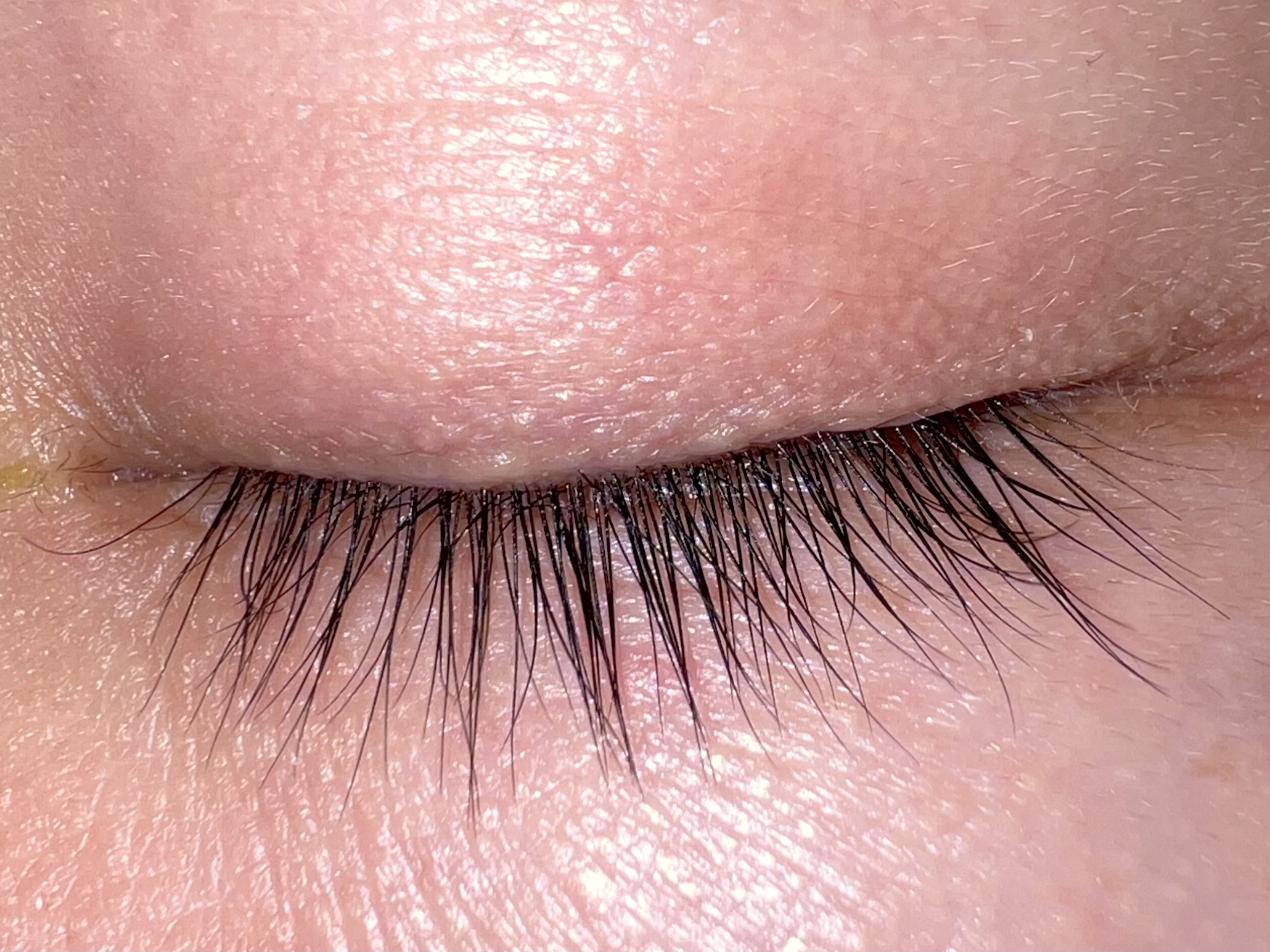 약간 아래를 보고 있는 상태(소위 "내리뜬 눈")의 속눈썹.