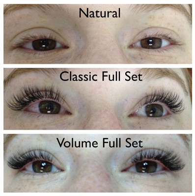 속눈썹 연장은 다양한 스타일로 분류될 수 있다. 가장 자연스러운 형태는 클래식 세트, 가장 풍성한 스타일은 볼륨 세트가 있으며, 이 둘의 조합인 하이브리드 세트도 있다.