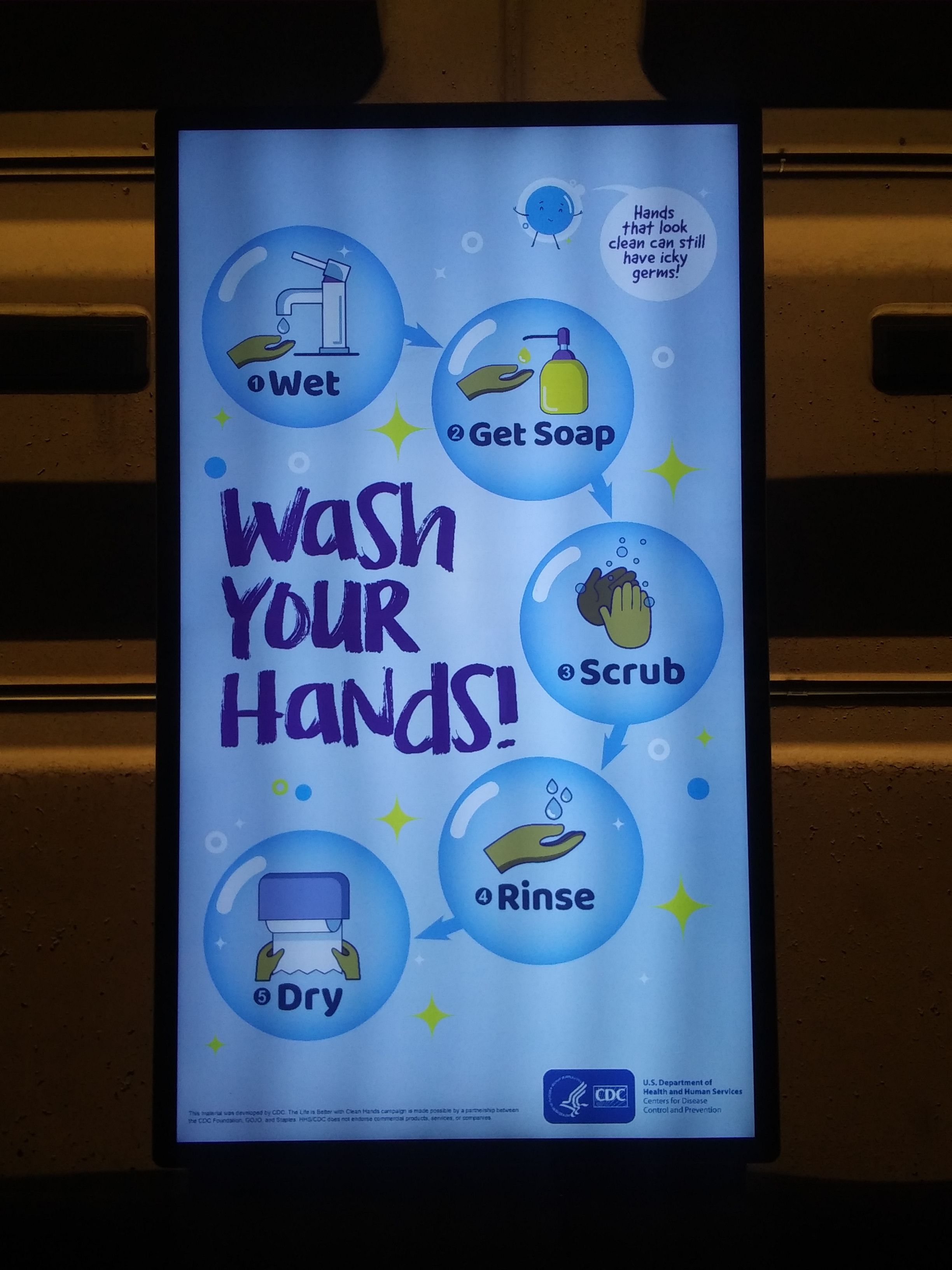 미국 질병통제예방센터(CDC)는 질병 전파를 예방하기 위해 다음과 같은 손 씻기 단계를 권장한다.[10]