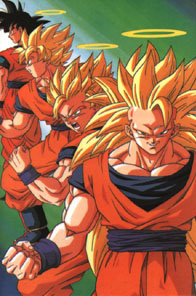 왼쪽부터: 손오공의 기본, 초사이어인, 초사이어인 2, 초사이어인 3 형태