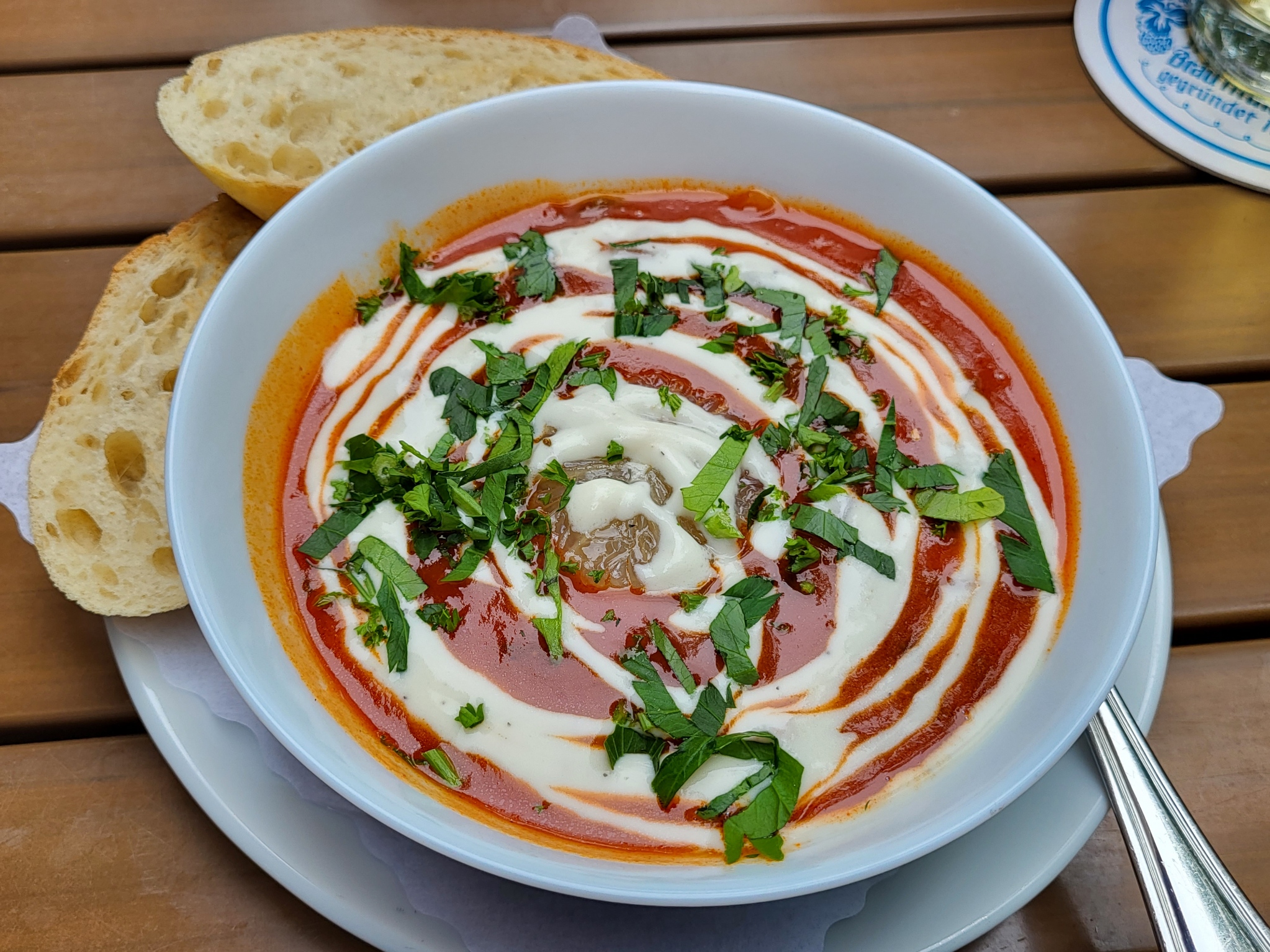 발터스하우젠(Waltershausen)의 발트하우스 쾰러휘테(Waldhaus Köhlerhütte)에서 사워크림, 레몬, 바게트와 함께 제공되는 솔랸카